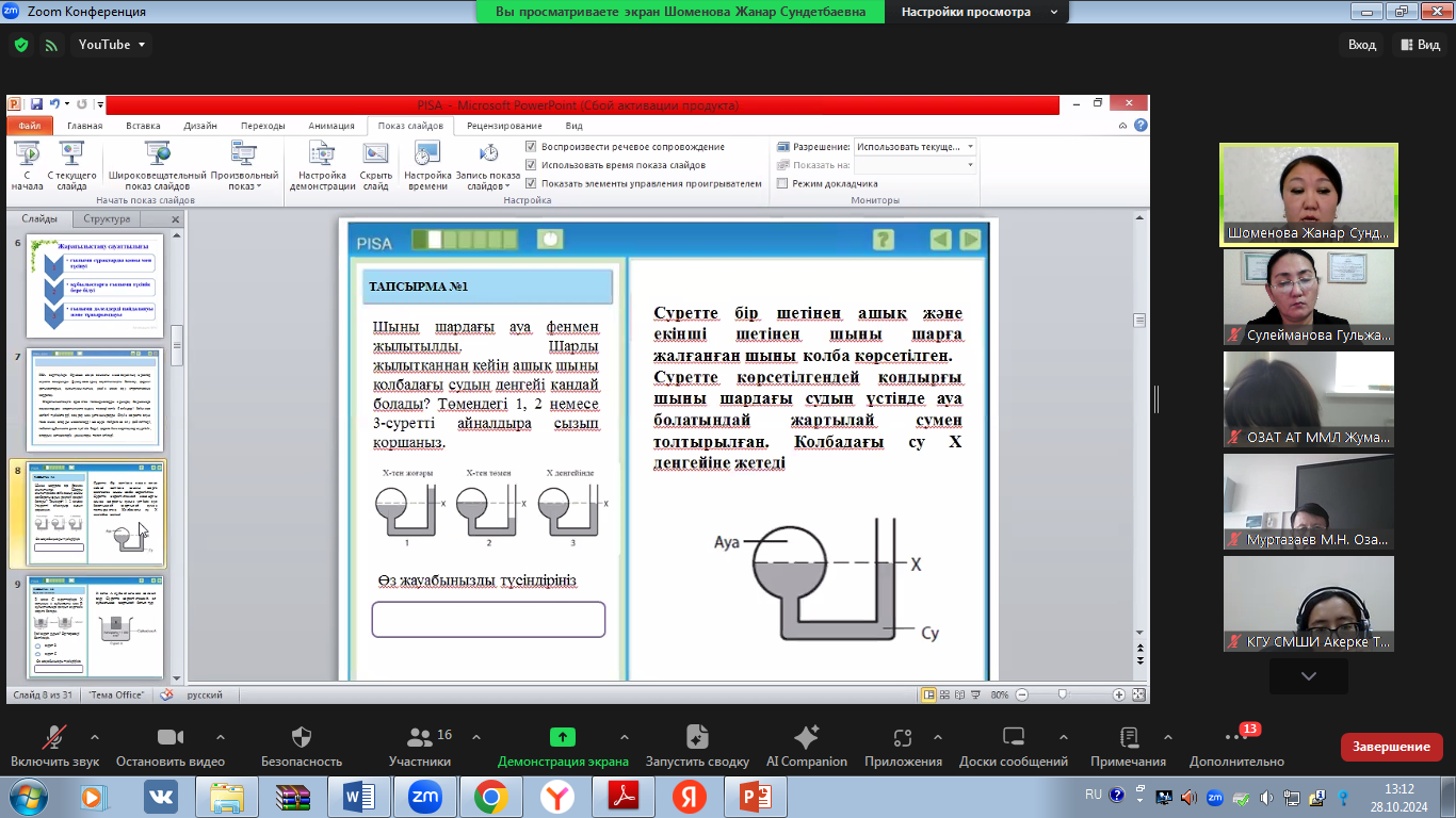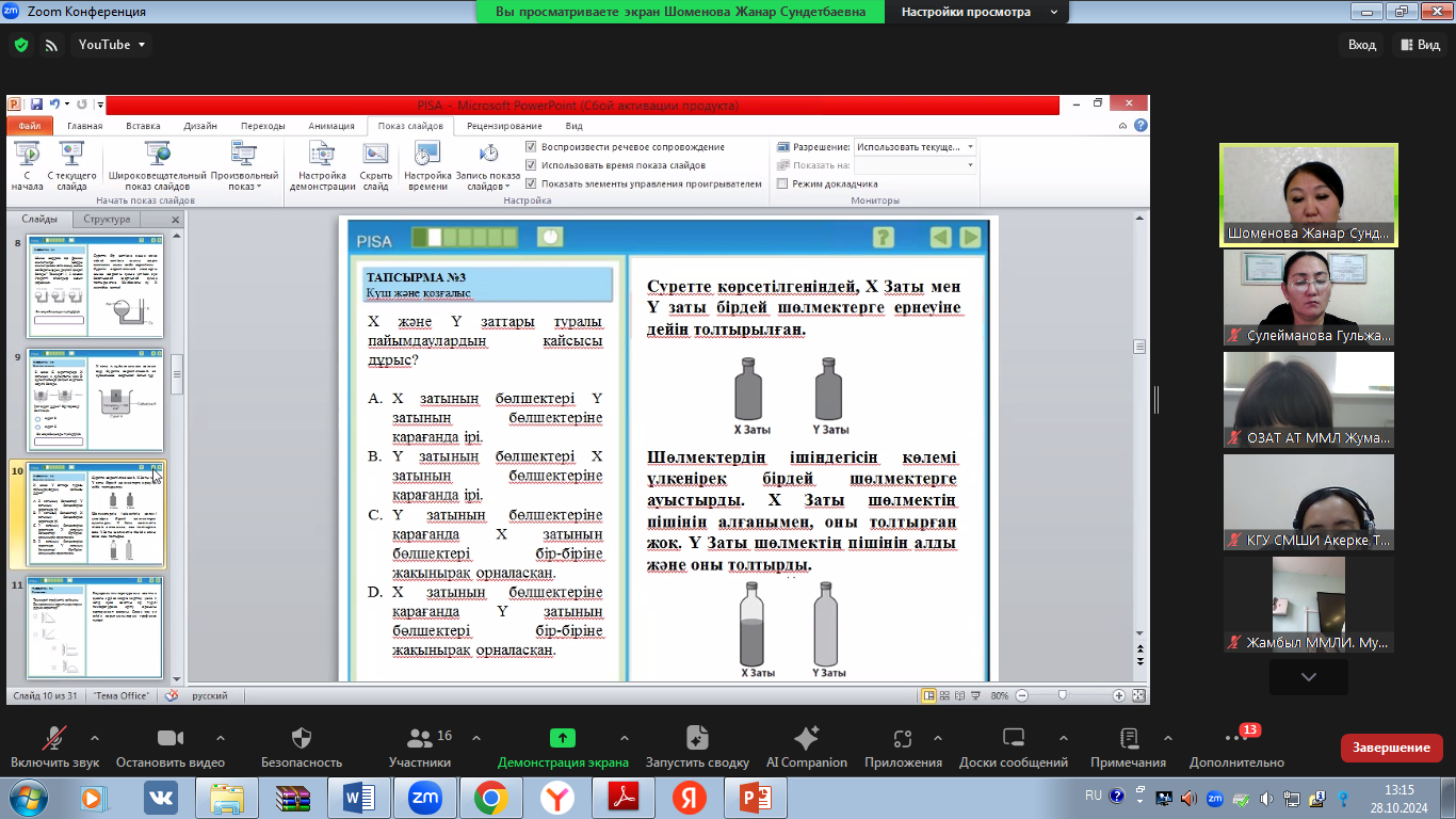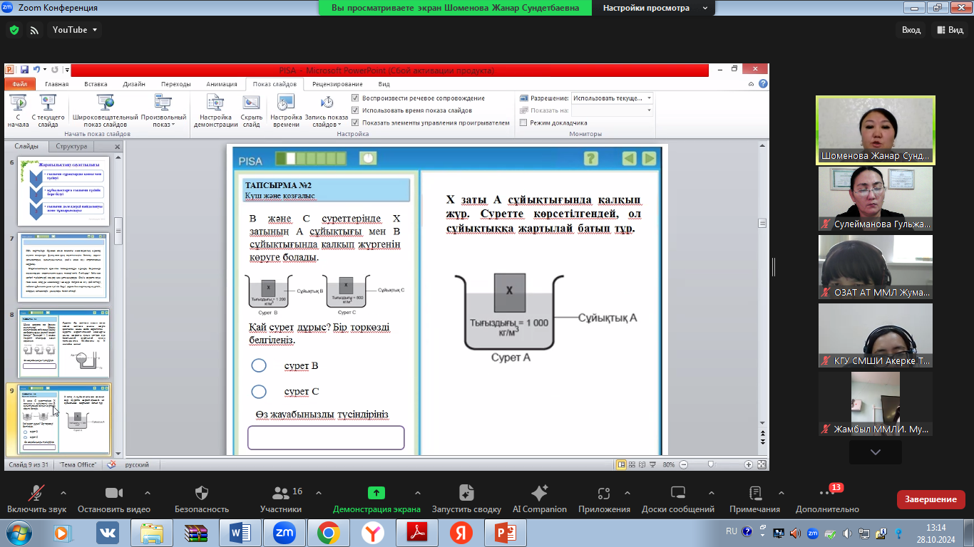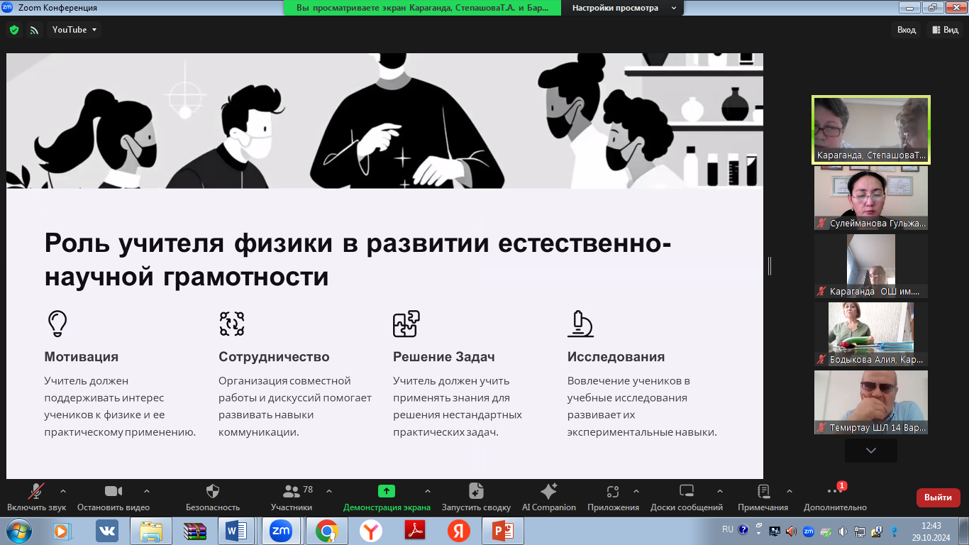 В рамках Осеннейшколы были проведены мастер-классы на тему «Повышение функциональной грамотности учащихся». В ходе мастер-классов с учителями физики в целях повышения естественнонаучной грамотности рассмотрены следующие задания: «Гидроэлекростанция», «Регулируемые очки», «Бег в жаркую погоду», «Энергоэффективный дом».