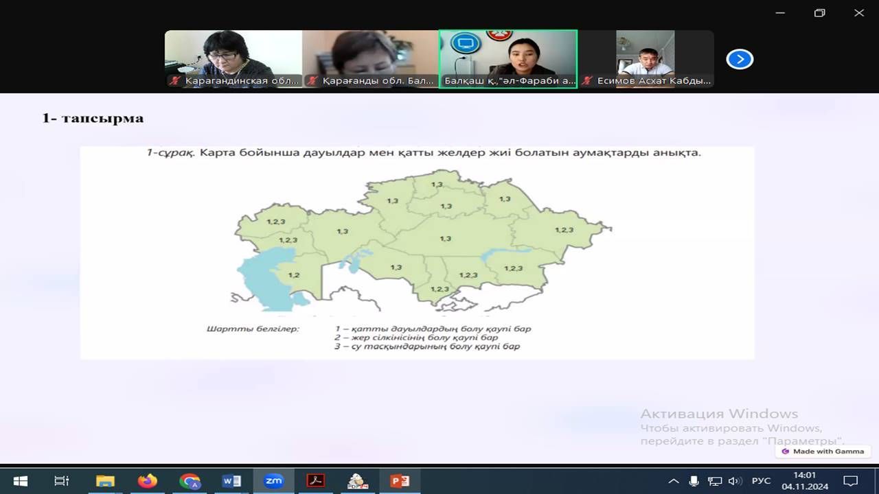 Учебно-методическим центром развития образования Карагандинской области 4 ноября 2024 года проведен нетворкинг для учителей географии Карагандинской области по развитию естественно научной грамотности на основе заданий вышедших из режима конфиденциальности.