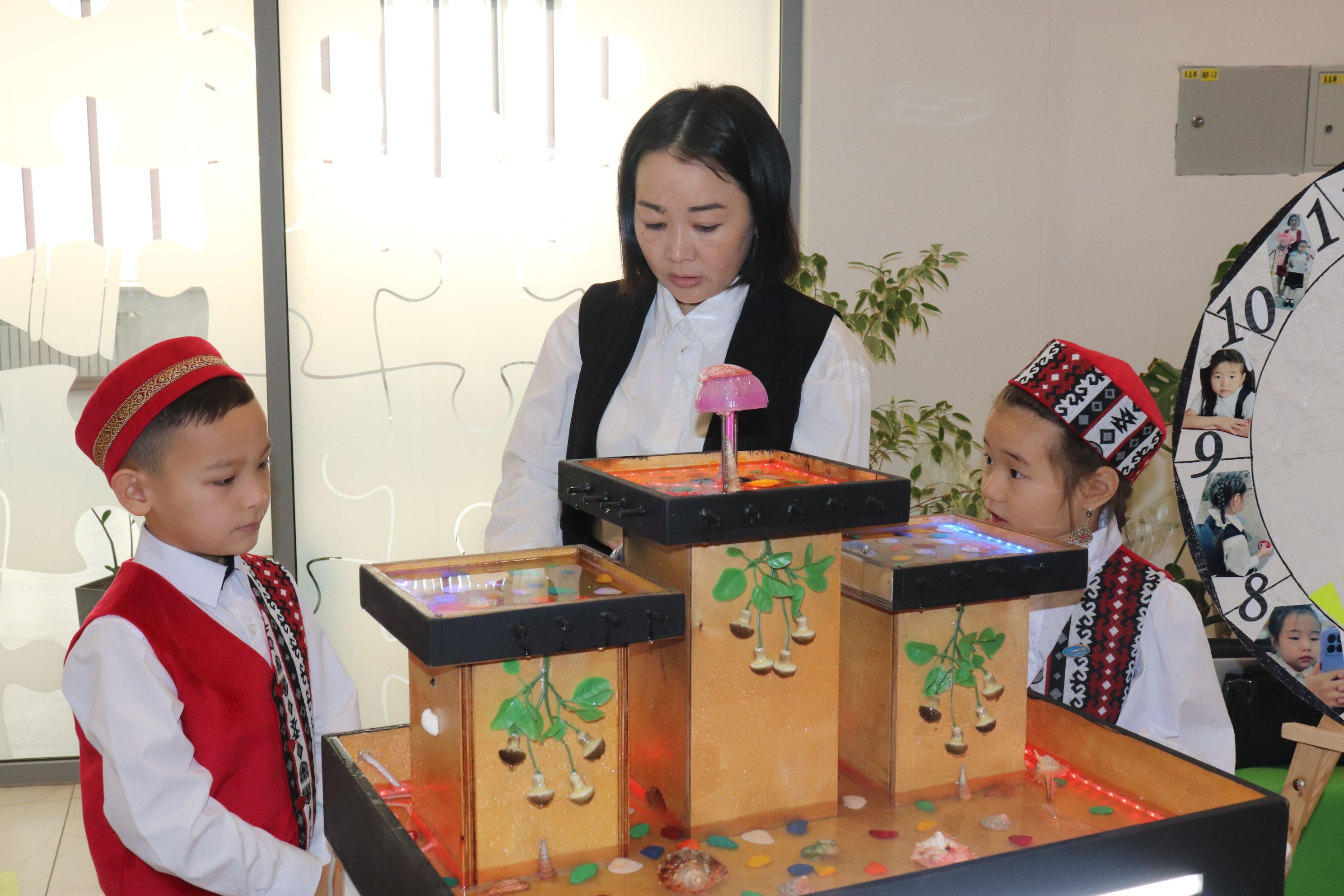 Құрылтай жұмысының бірінші блогы келесі бағыттар бойынша  көрме түрінде ұсынылды: «Ұлттық ойын – ұлт қазынасы», «Өнегелі 15 минут», «Үнемді тұтынуды» қалыптастырып, «Қамқор», «Еңбегі адал – жас өрен», «Шабыт», «Ұшқыр ой алаңы», «Балалар кітапханасы» жобалары арқылы жүзеге асырылды.