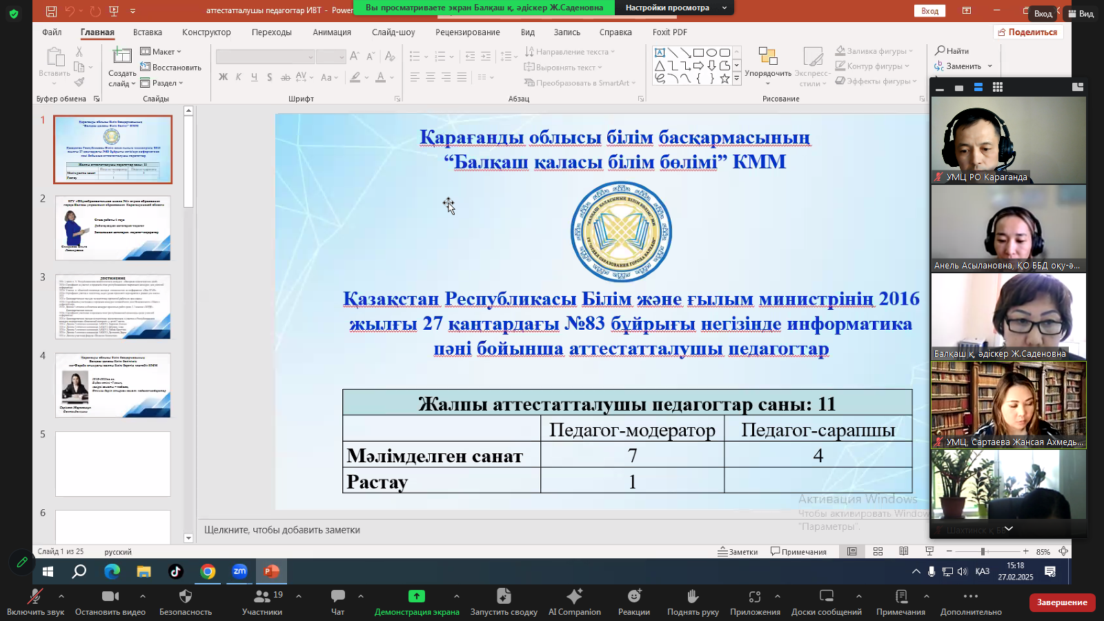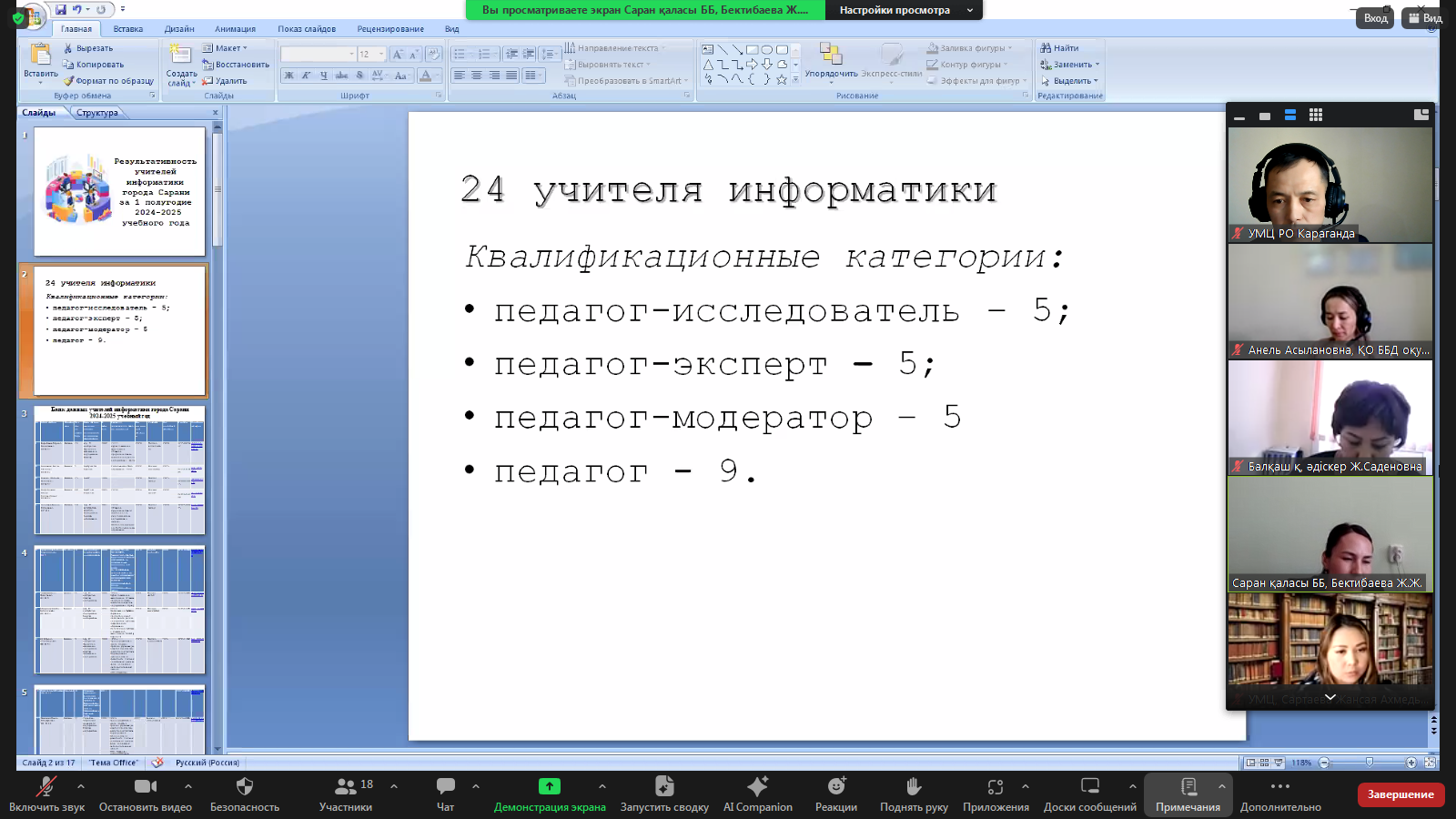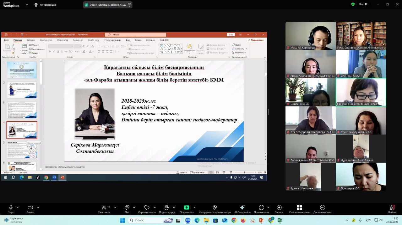 Учебно-методический центр развития образования Карагандинской области 27 февраля2025 года на платформе ZOOM провел методический день для методистов отделов образования, заместителей директоров специализированных школ-интернатов, курирующих информатизацию.
