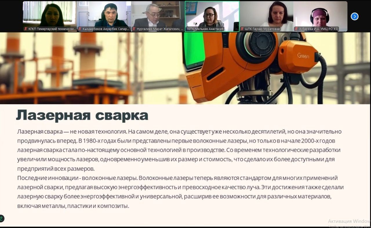 2025 жылғы 24 ақпанда Қарағанды облысында білім беруді дамытудыңоқу-әдістемелік орталығы Теміртау техникалық колледжімен бірлесіп,«Дәнекерлеудігі өнеркәсіптік процестің инновациялары мен қауіпсіздігі: заманауи сын-қатерлер мен перспективалар» облыстық ғылыми-техникалық конференциясынөткізді