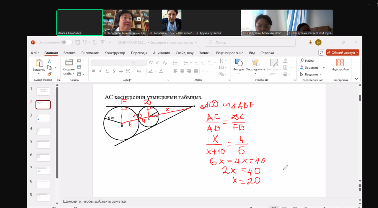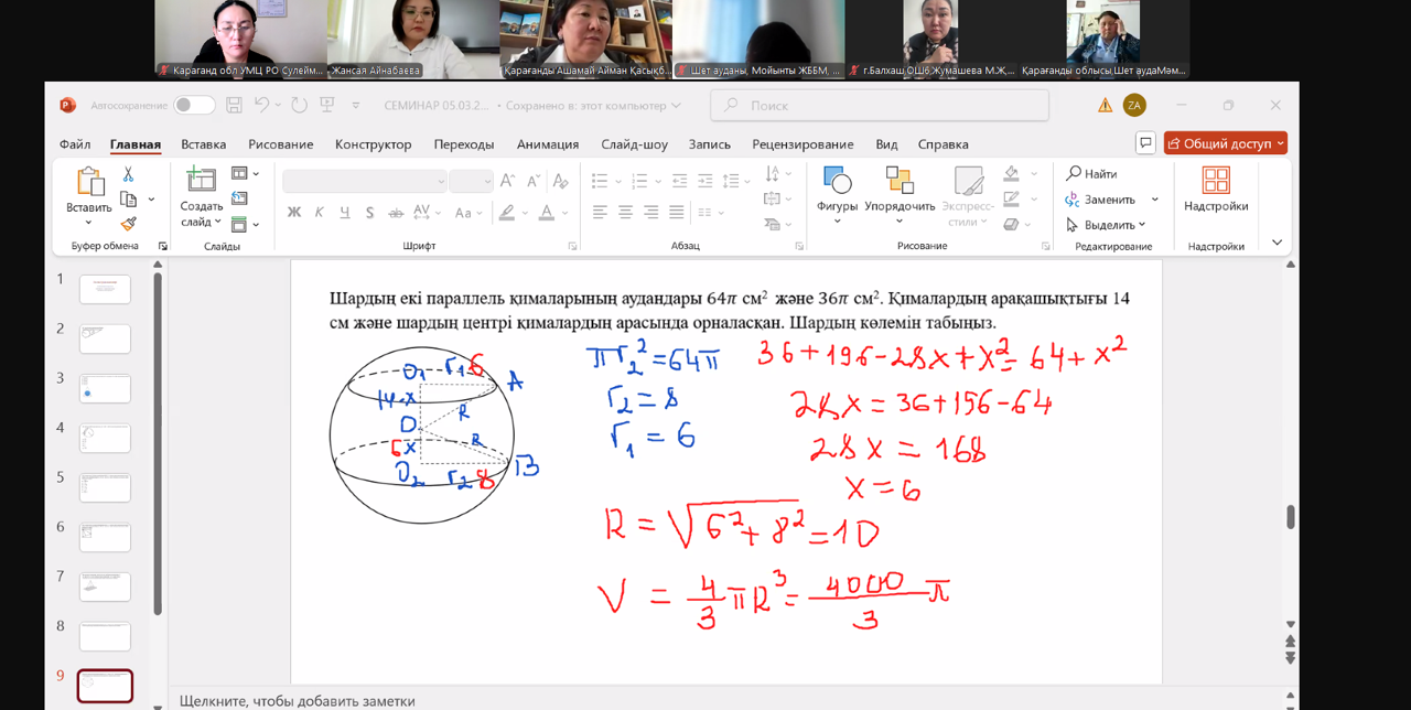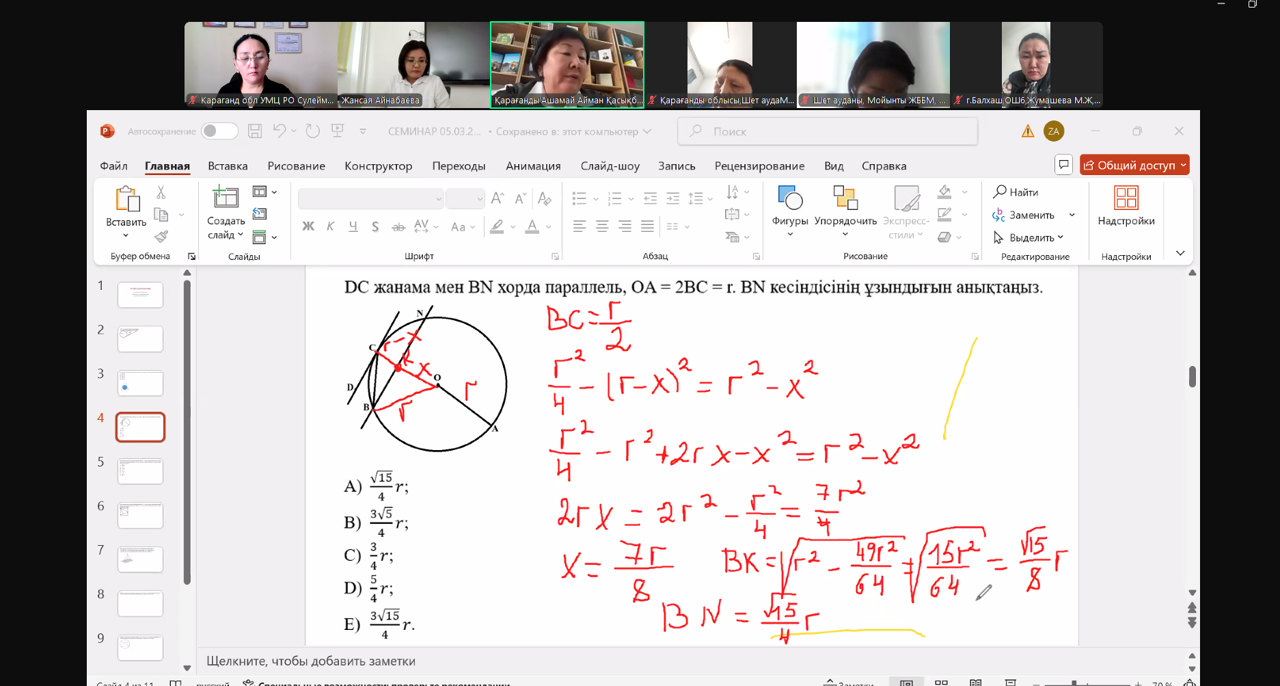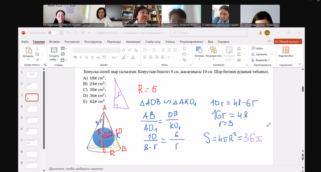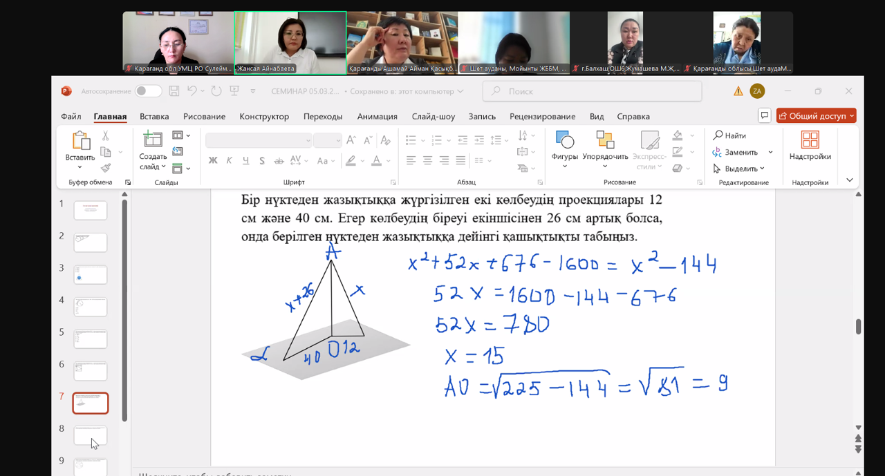 05 марта 2025 года учебно-методическим центром развития образования Карагандинской области проведен практический семинар на тему «Повышение математической грамотности». В ходе семинара были обсуждены пути решения задач математической грамотности сложного уровня.