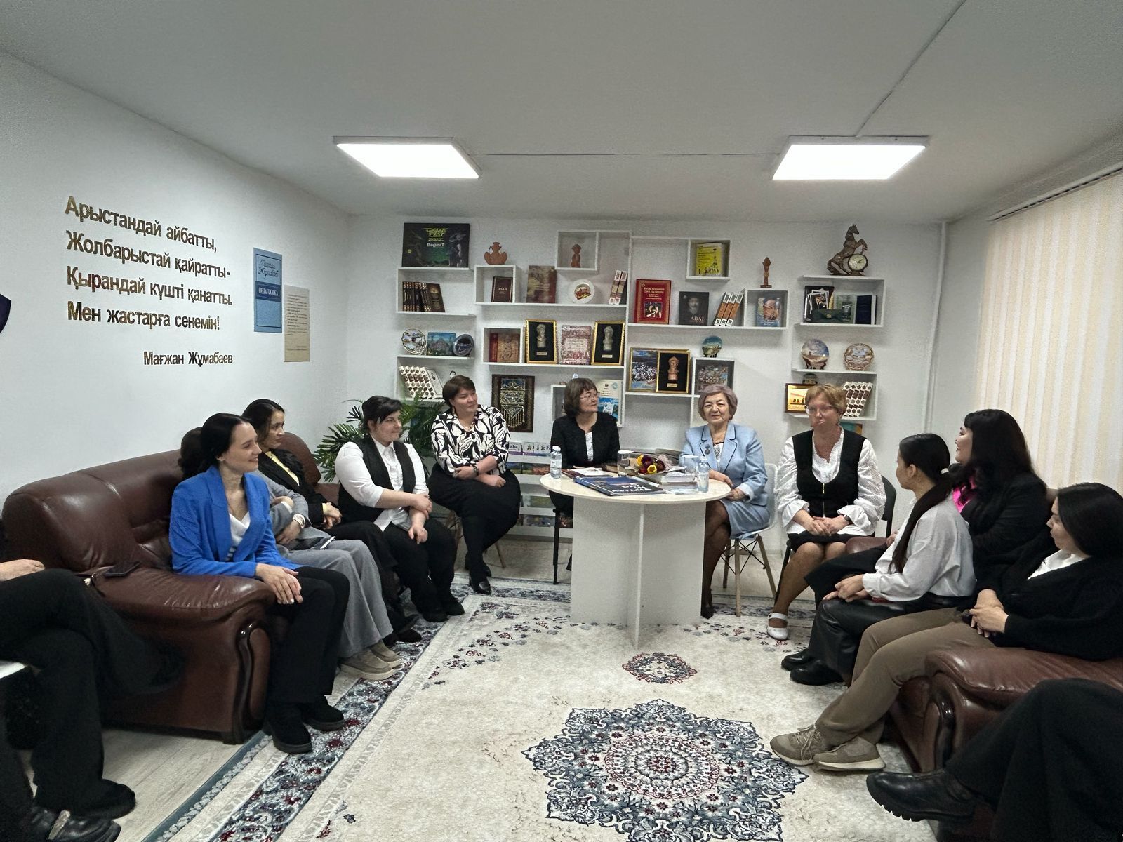 Встреча прошла в формате «Печа-куча». Встреча была организована в лоборатории молодых педагогов «JAÑASHYL USTAZ», расположенной на 1 этаже учебно-методического центра, а также проведена экскурсия по музею. Собравшихся поздравила руководитель учебно-методического центра Абдикерова Бакиткуль Хималдиновна и вручила благодарственные письма.