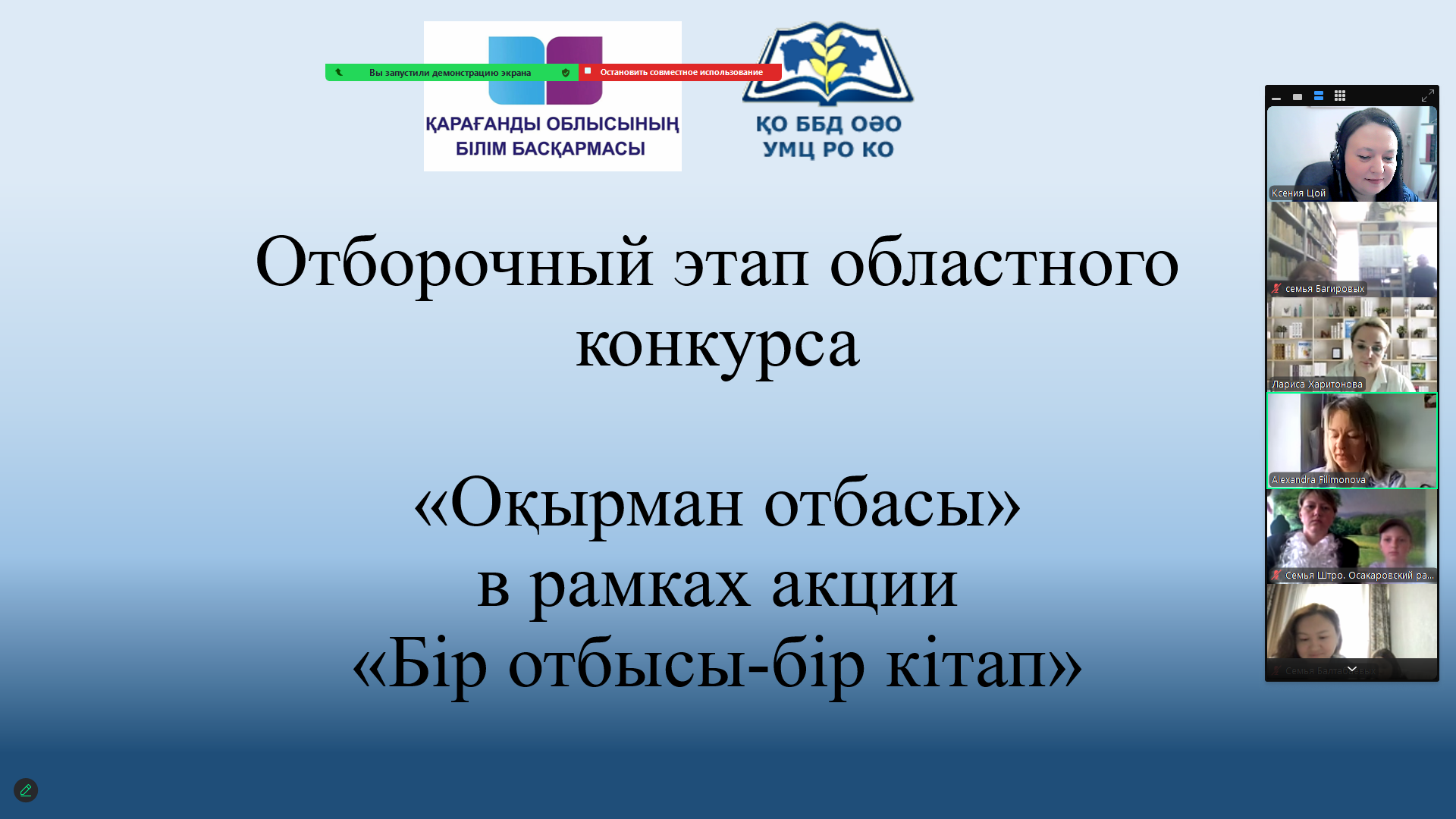 Қарағанды облысында білім беруді дамытудың оқу-әдістемелік орталығы 2025 жылғы 28 сәуірде Қарағанды облысының аудандары/қалалары білім беру ұйымдарының оқыту тілі орыс тілінде оқытатын білім беру ұйымдары оқушыларының отбасылары үшін «Бір отбасы-бір кітап» акциясы аясында «Оқырман отбасы» байқауының іріктеу кезеңін өткізді.