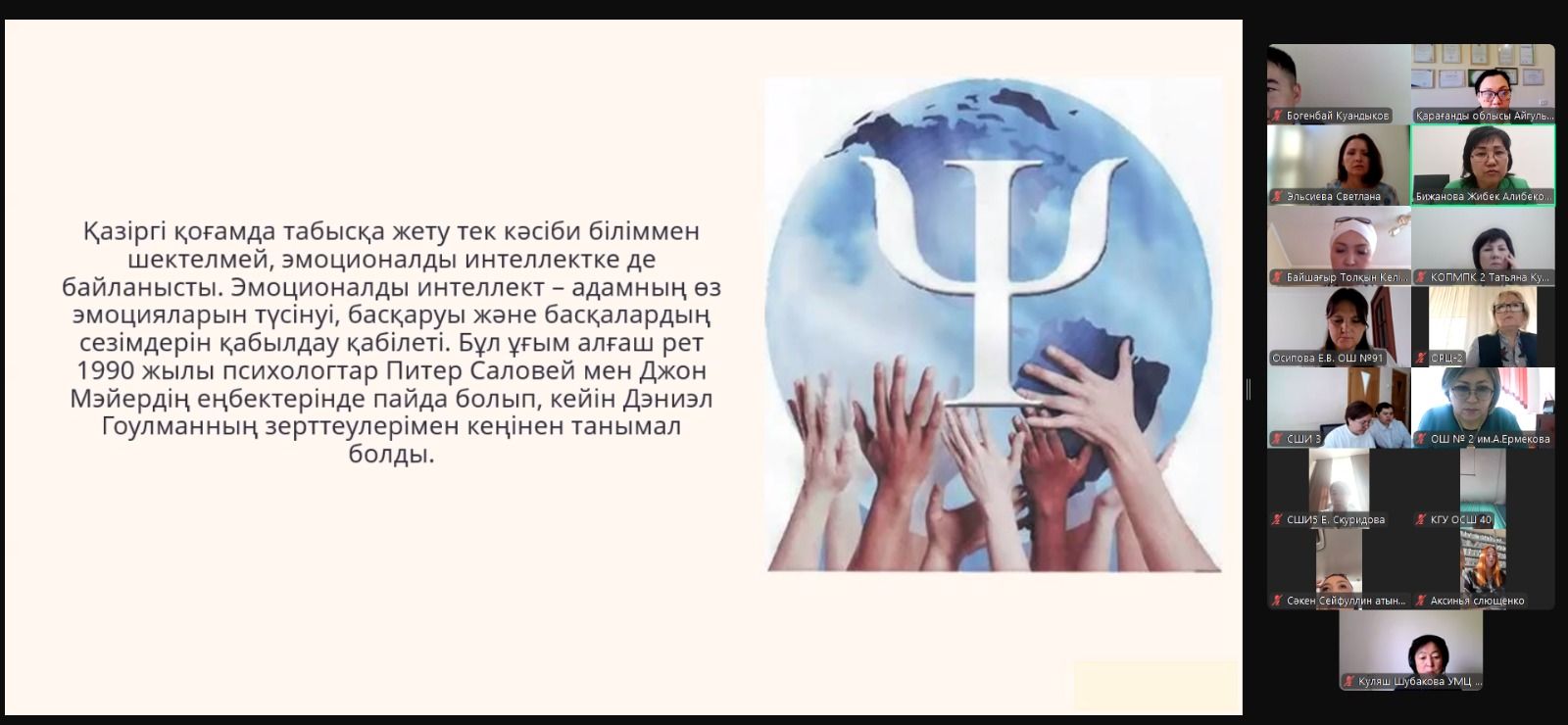 Ж.А. Бижанова –Қарағанды облысының білім басқармасына қарасты «Ақпараттық технологиялар мамандандырылған мектеп-лицей-интернаты» КММ педагог-психологы;