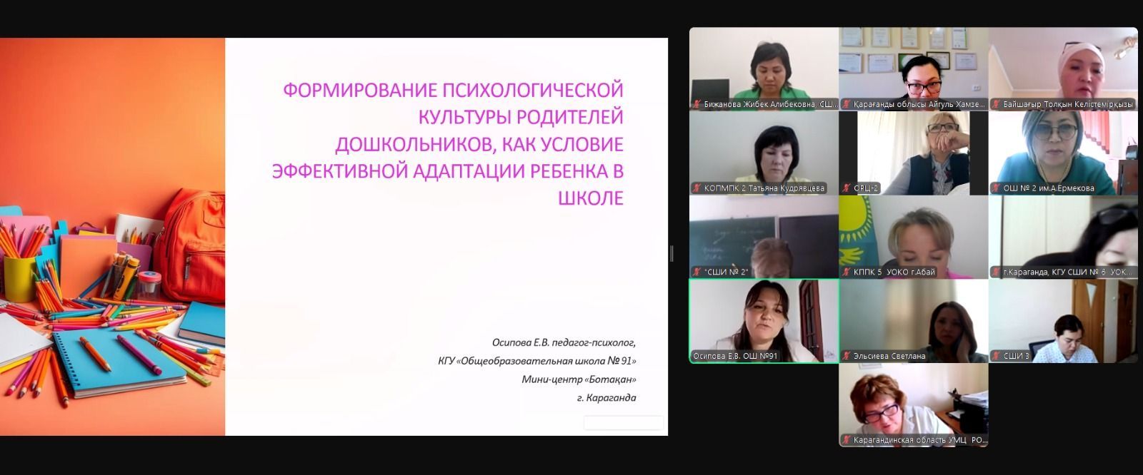 Осипова Е.В. –Қарағанды қаласының «Ботақан» шағын орталығы бар №91 жалпы білім беретін мектебі КММ педагог-психологы.