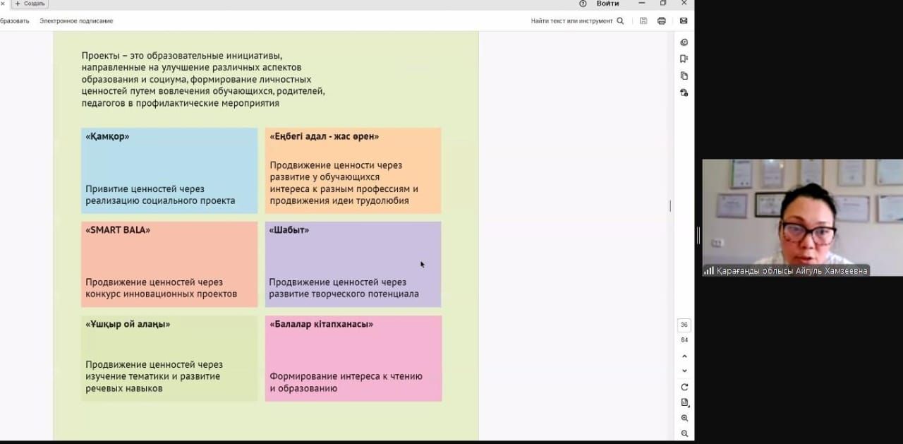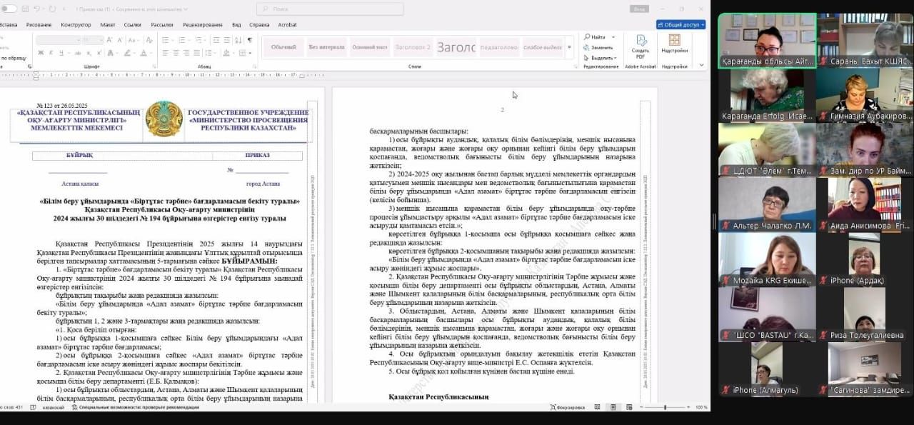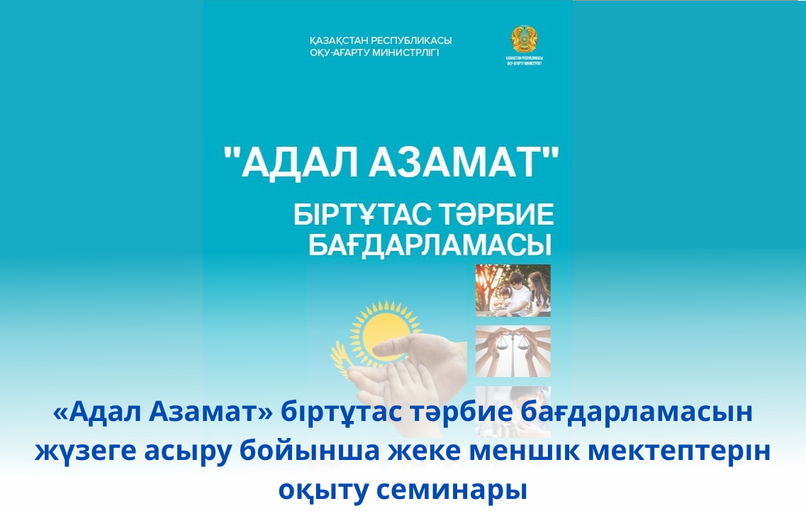 26 июня 2025 года  согласно поручения Министерства Просвещения Республики Казахстан учебно-методическим центром развития образования Карагандинской области для директоров, заместителей директоров и педагогов частных школ проведен в онлайн формате обучающий семинар по реализации единой воспитательной программы «Адал Азамат» .