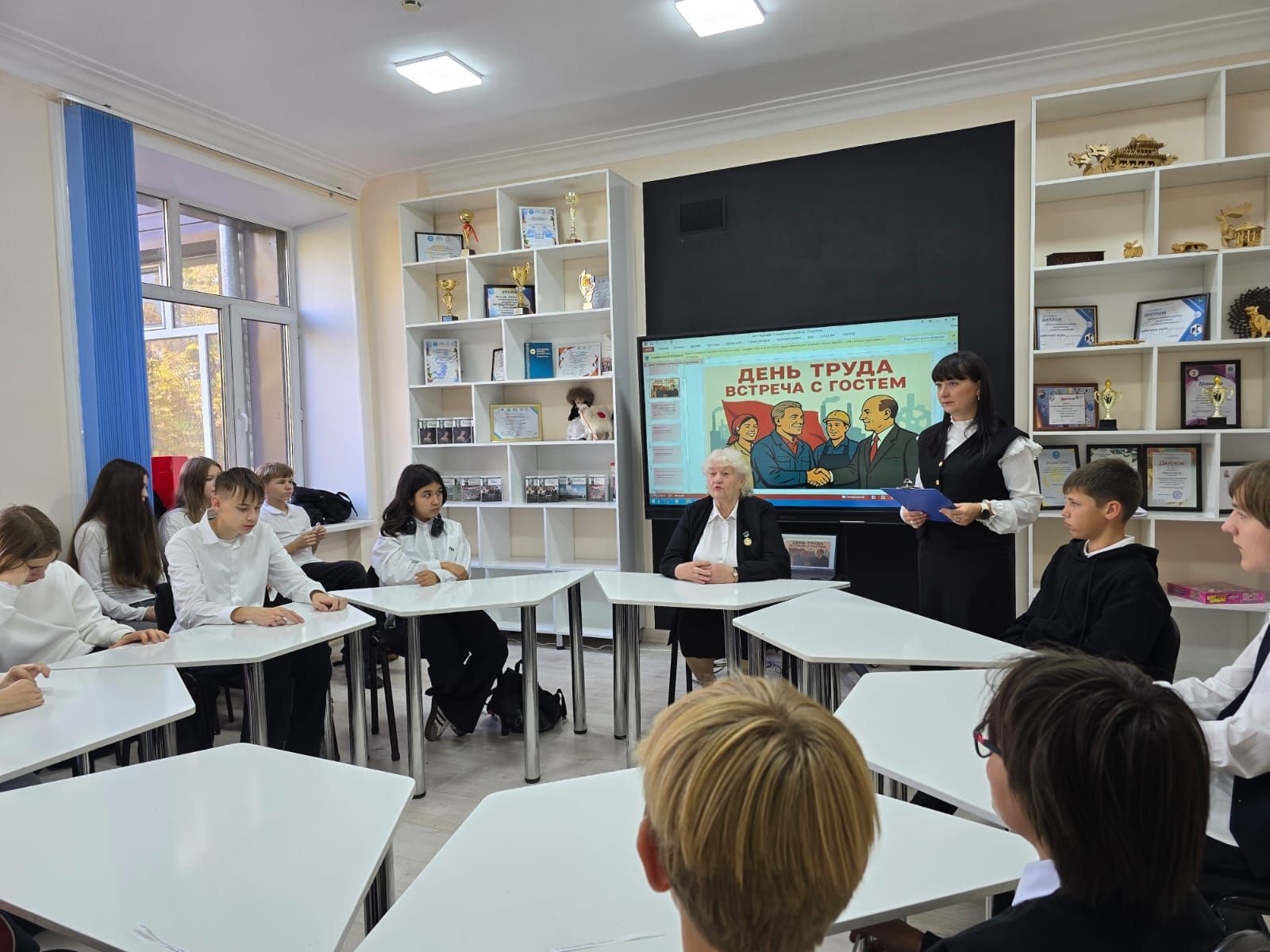 Во время классного часаучащиеся встретилисьс людьми разных рабочих профессий, где поближе узнали о рабочих профессиях и о их особенностях.