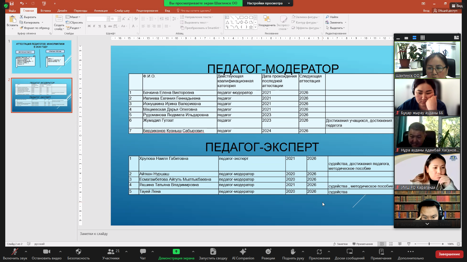 -  «Об аттестации педагогов». Выступили, методисты отделов образования.
