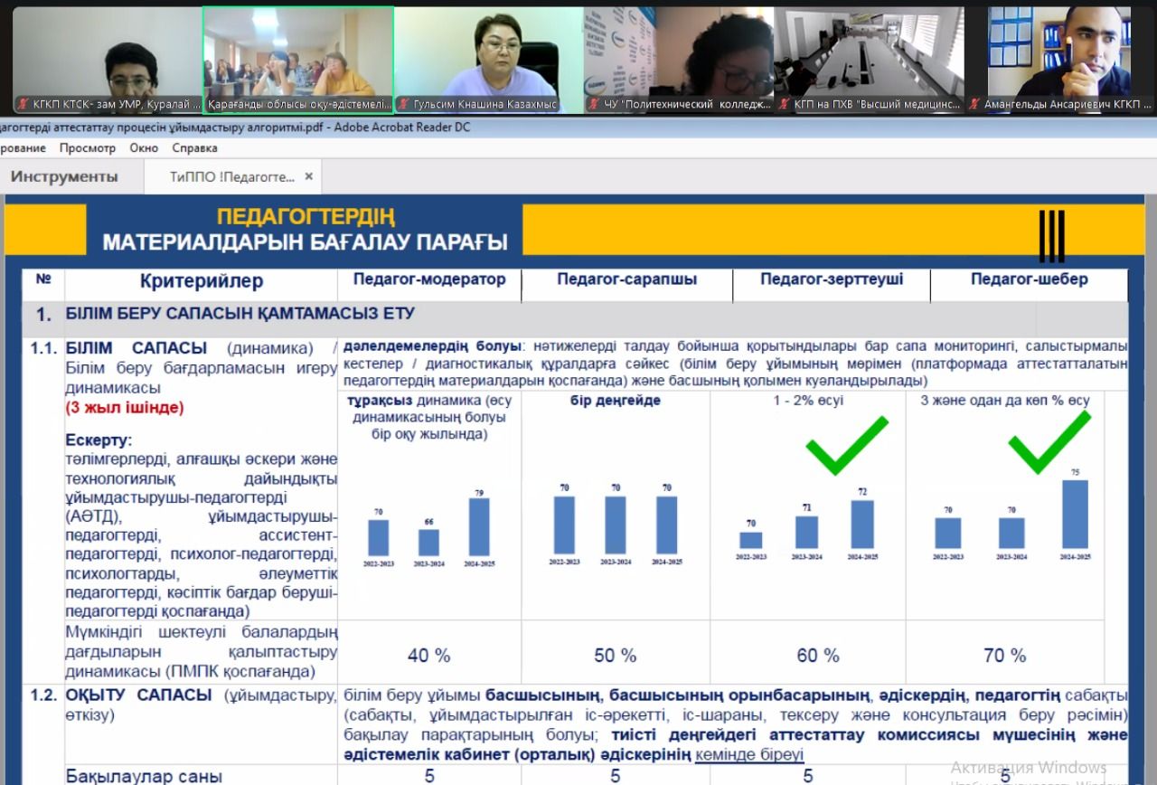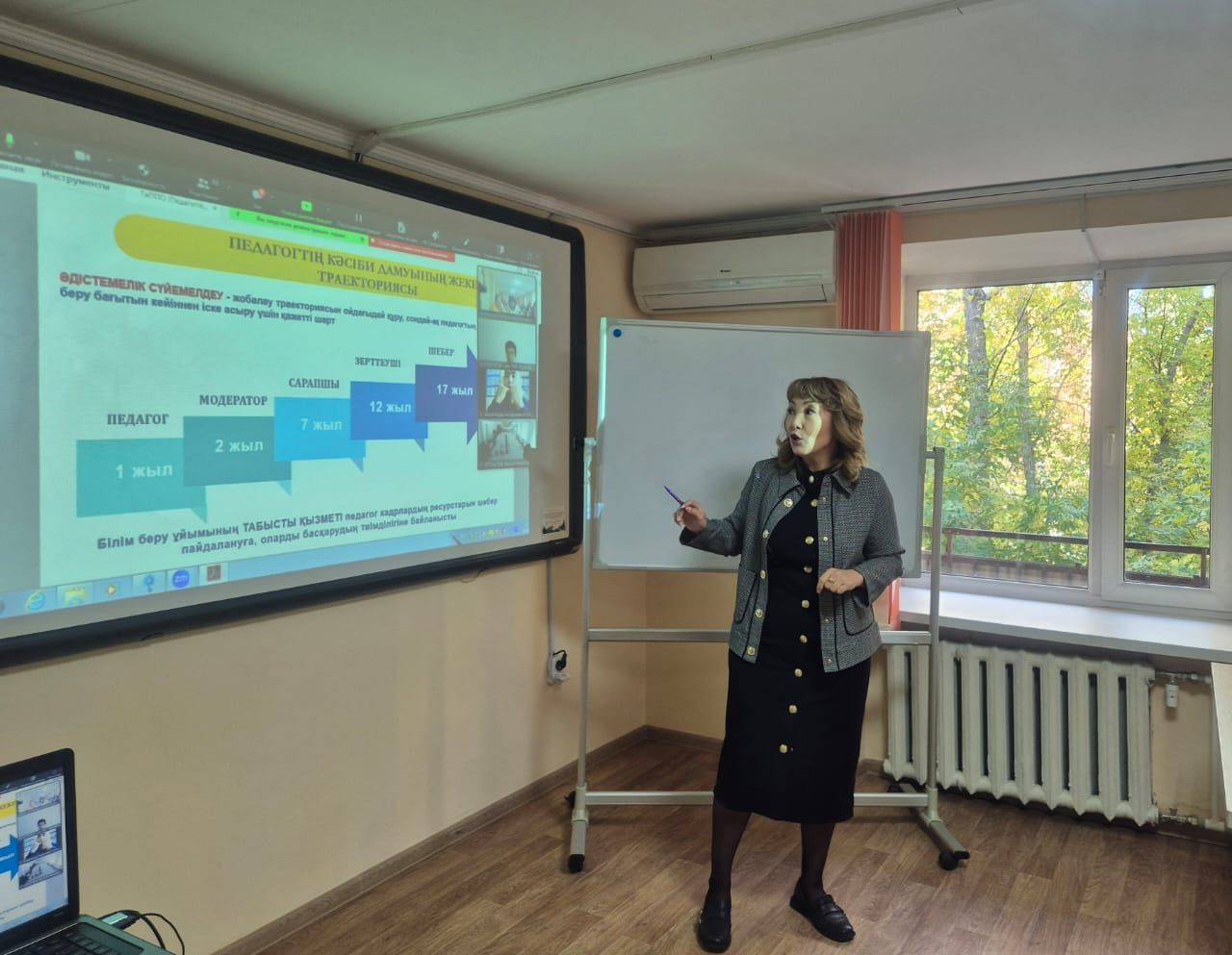 - «Алгоритм организации процесса аттестации педагогов», Мухамедьярова Айгуль Зейнулаевна, руководитель отдела анализа и стратегического развития содержания;