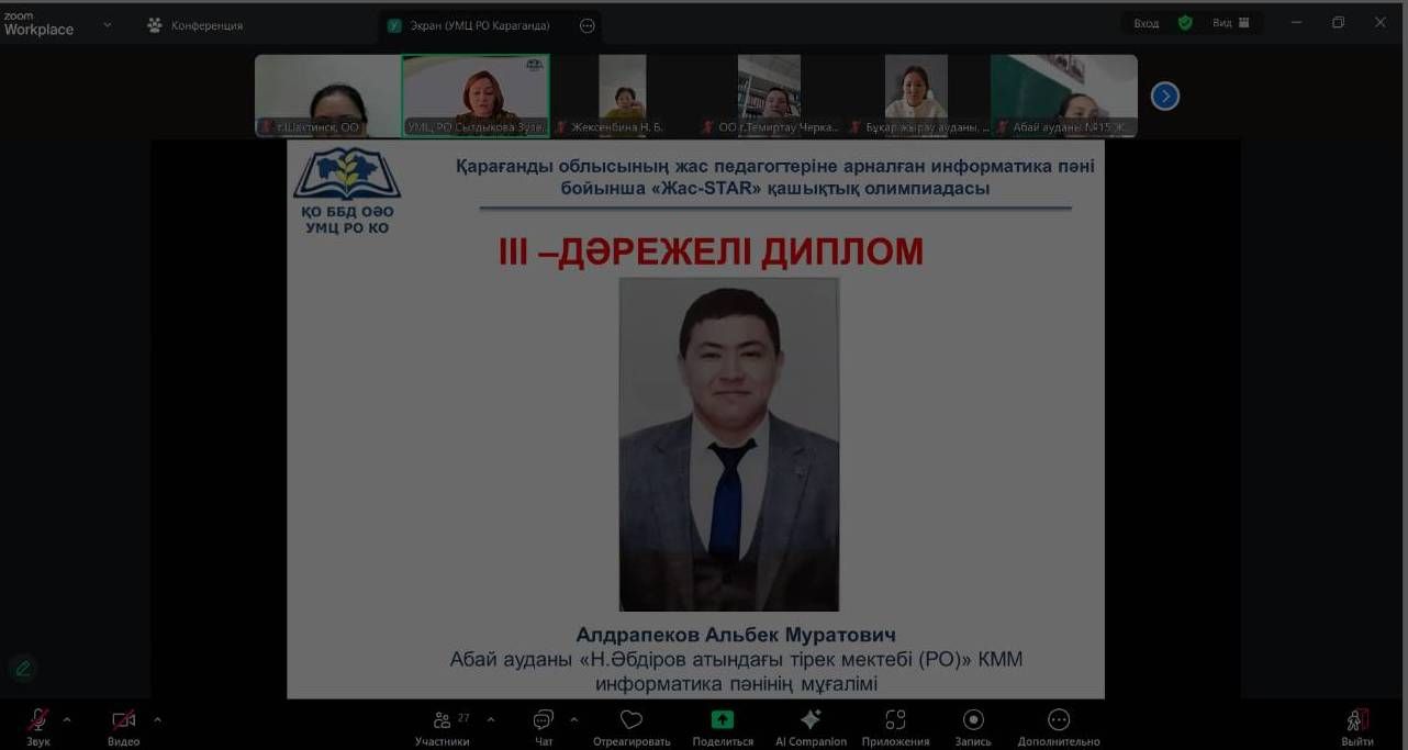 30 сентября 2025года проведен ІІ этап дистанционный олимпиады «Жас - STAR» для молодых педагогов Карагандинской области по информатике.