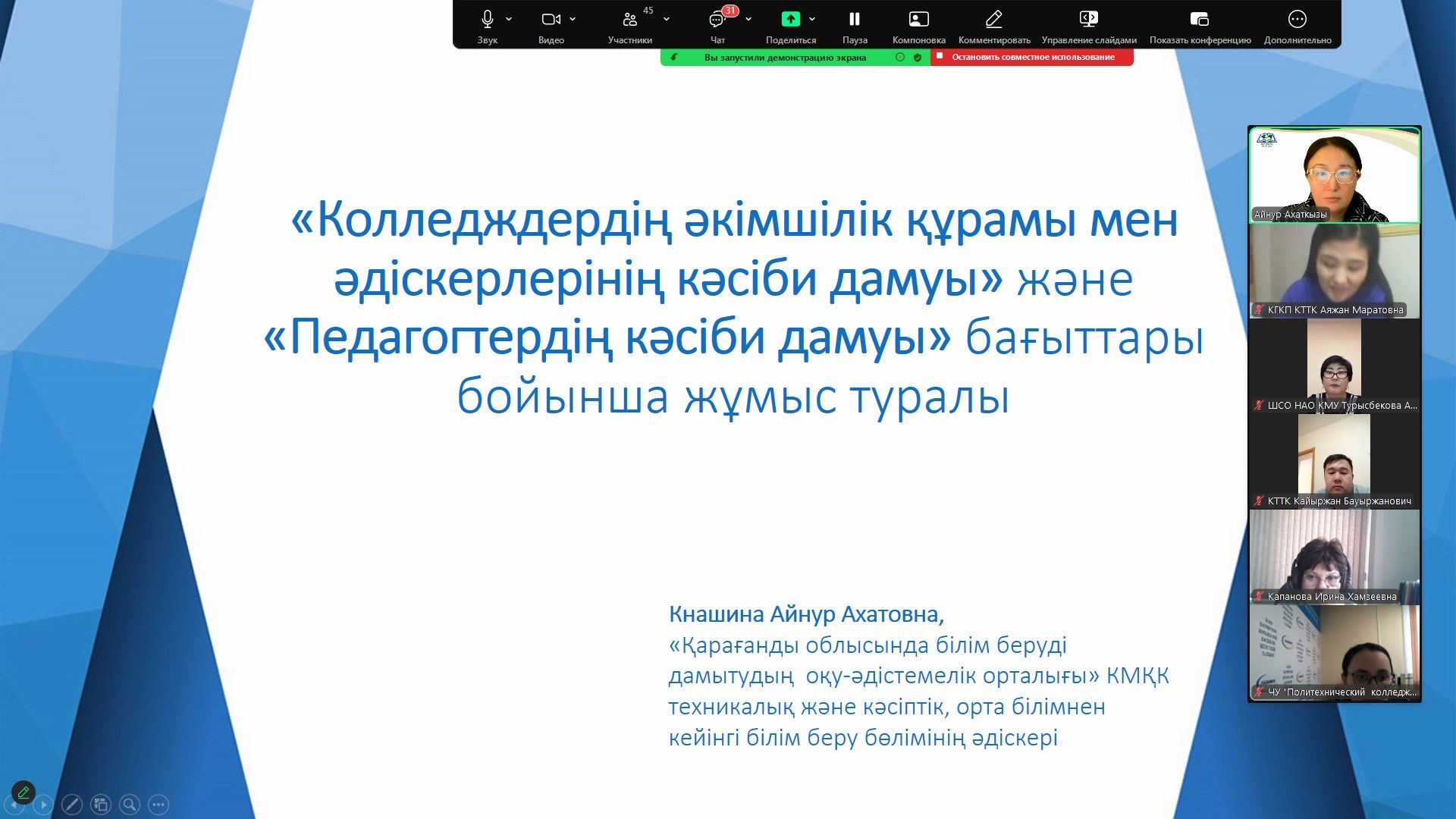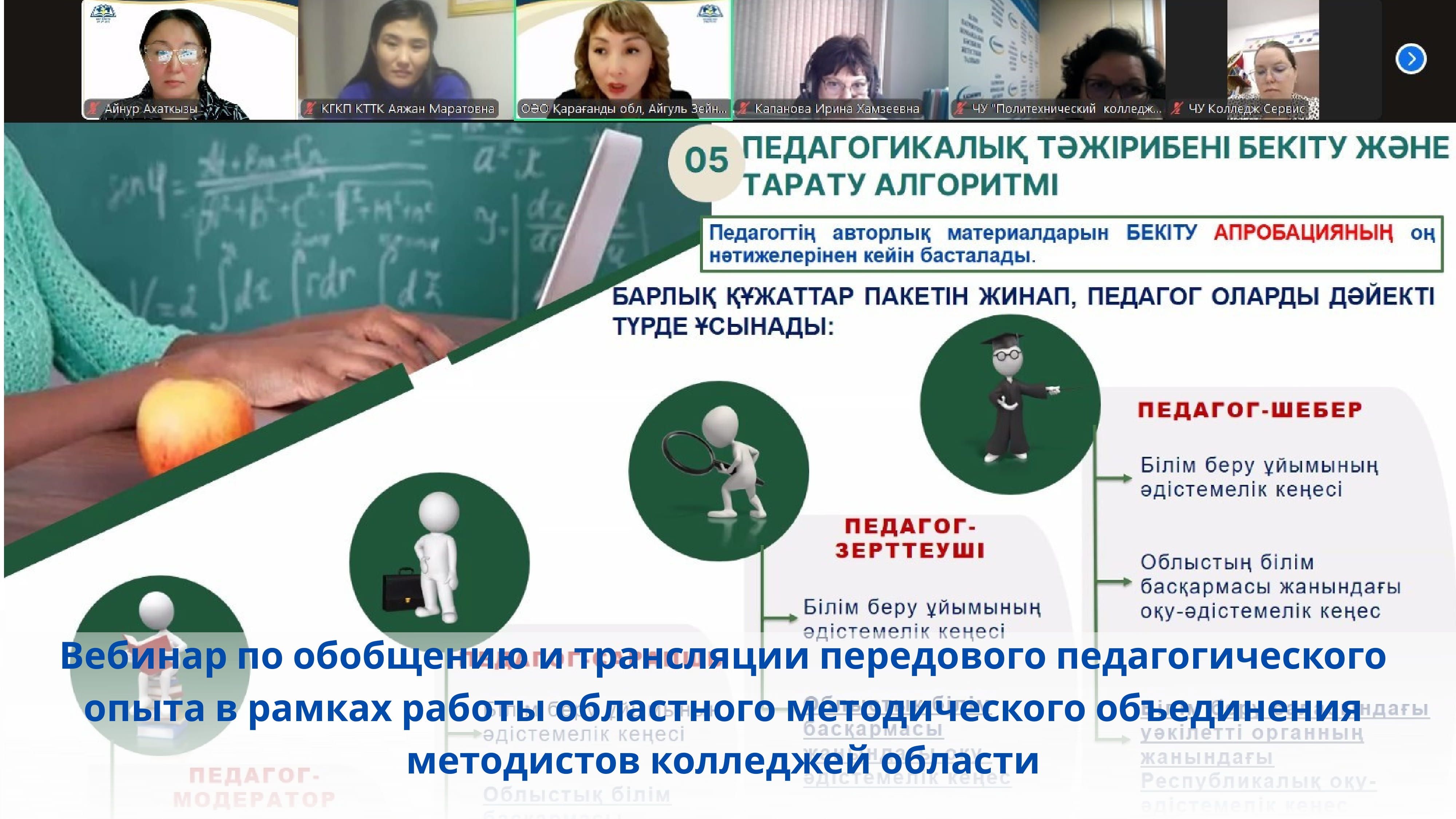 Вебинар для методистов колледжей области по обобщению и трансляции передового педагогического опыта