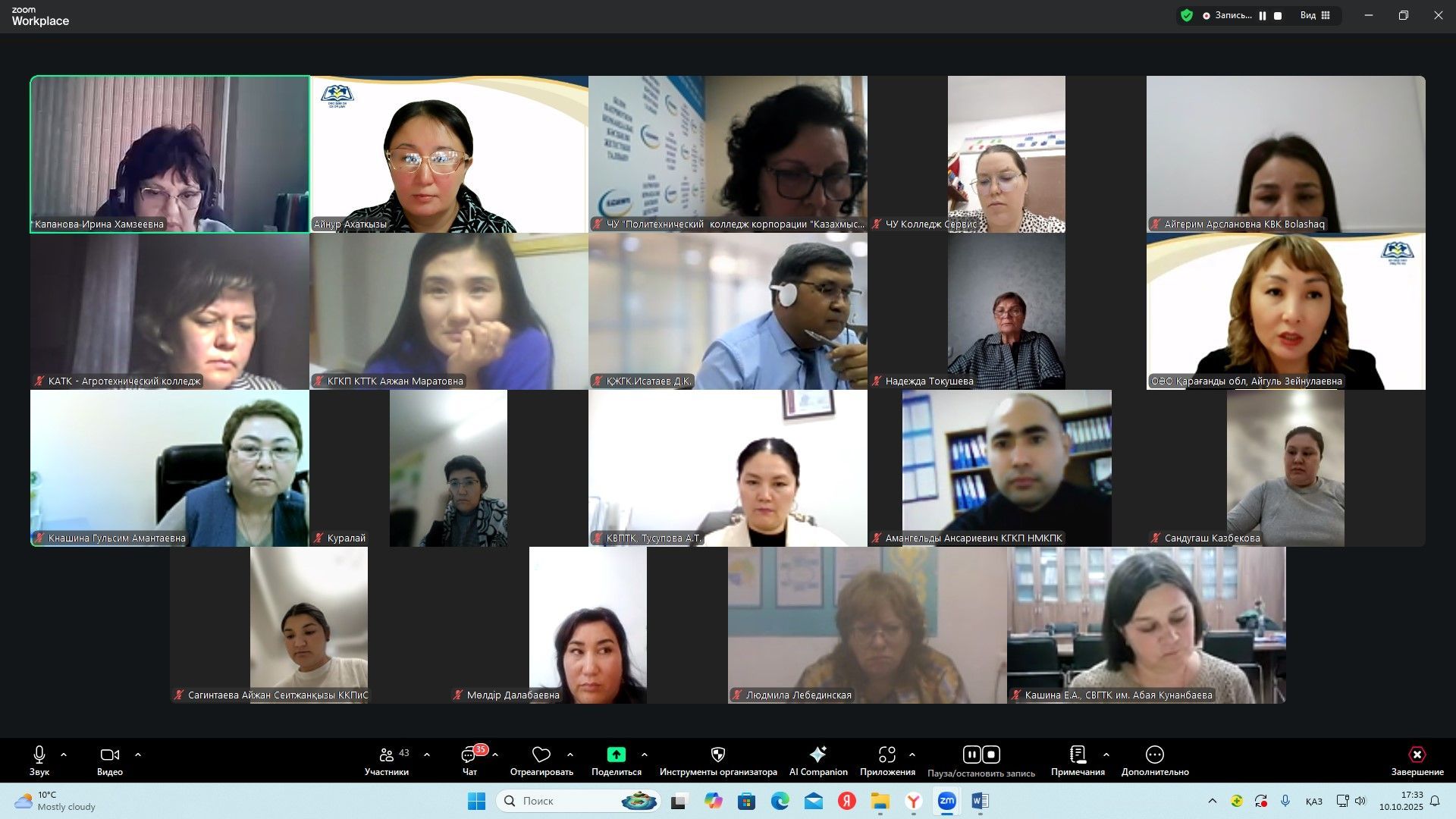 10 октября 2025 года Учебно-методическим центром развития образования Карагандинской области был проведен вебинар по обобщению и трансляции передового педагогического опыта в рамках работы областного методического объединения методистов организаций технического и профессионального, послесреднего образования.