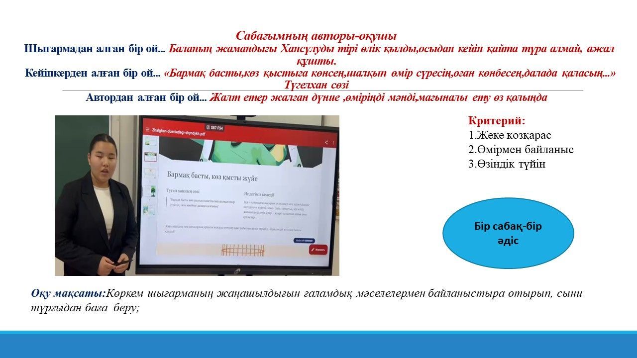Айтқұлова Гүлшара Серікқызы, учитель казахского языка и литературы КГУ «ОШ им. Б.Момышулы» г.Балхаш