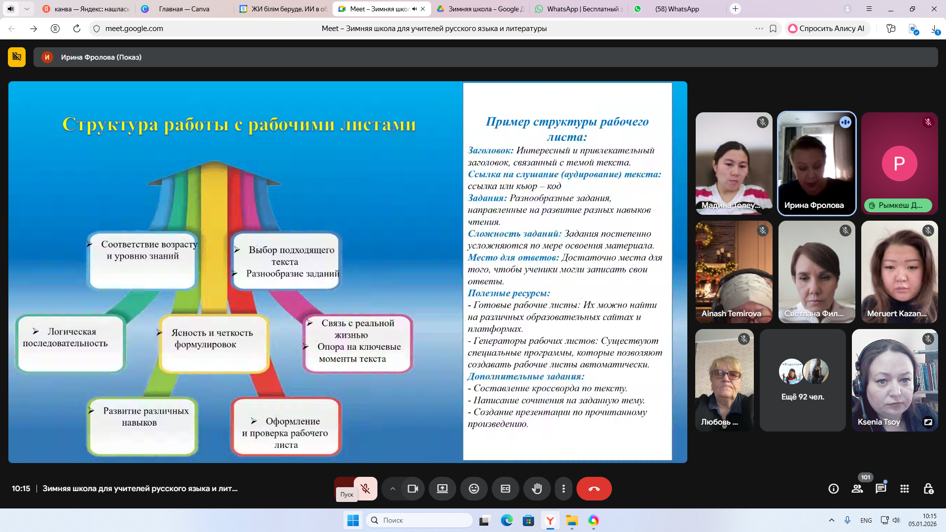 Практико-ориентированный опыт применения рабочих листов как средства развития навыков слушания и говорения представила Фролова Ирина Викторовна, учитель русского языка и литературы КГУ «ОШ №4» г. Балхаш.