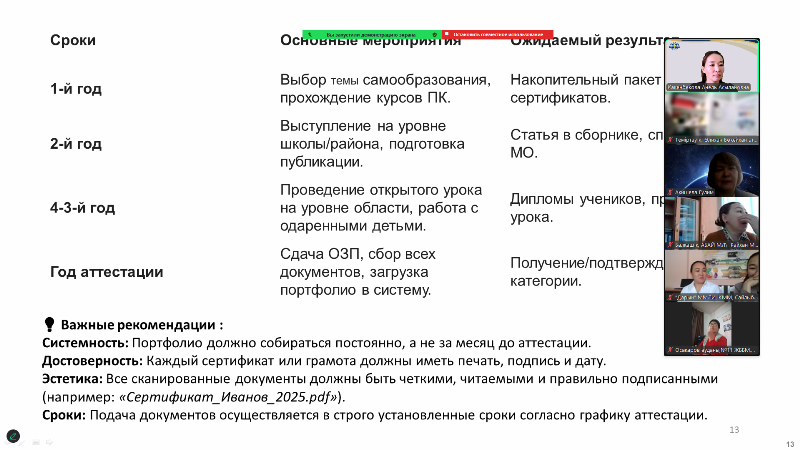- Порядок проведения аттестации педагогов: этапы, сроки, требования. Формирование портфолио— Какенбекова Анель Асылановна, методист Учебно-методического центра развития образования Карагандинской области;