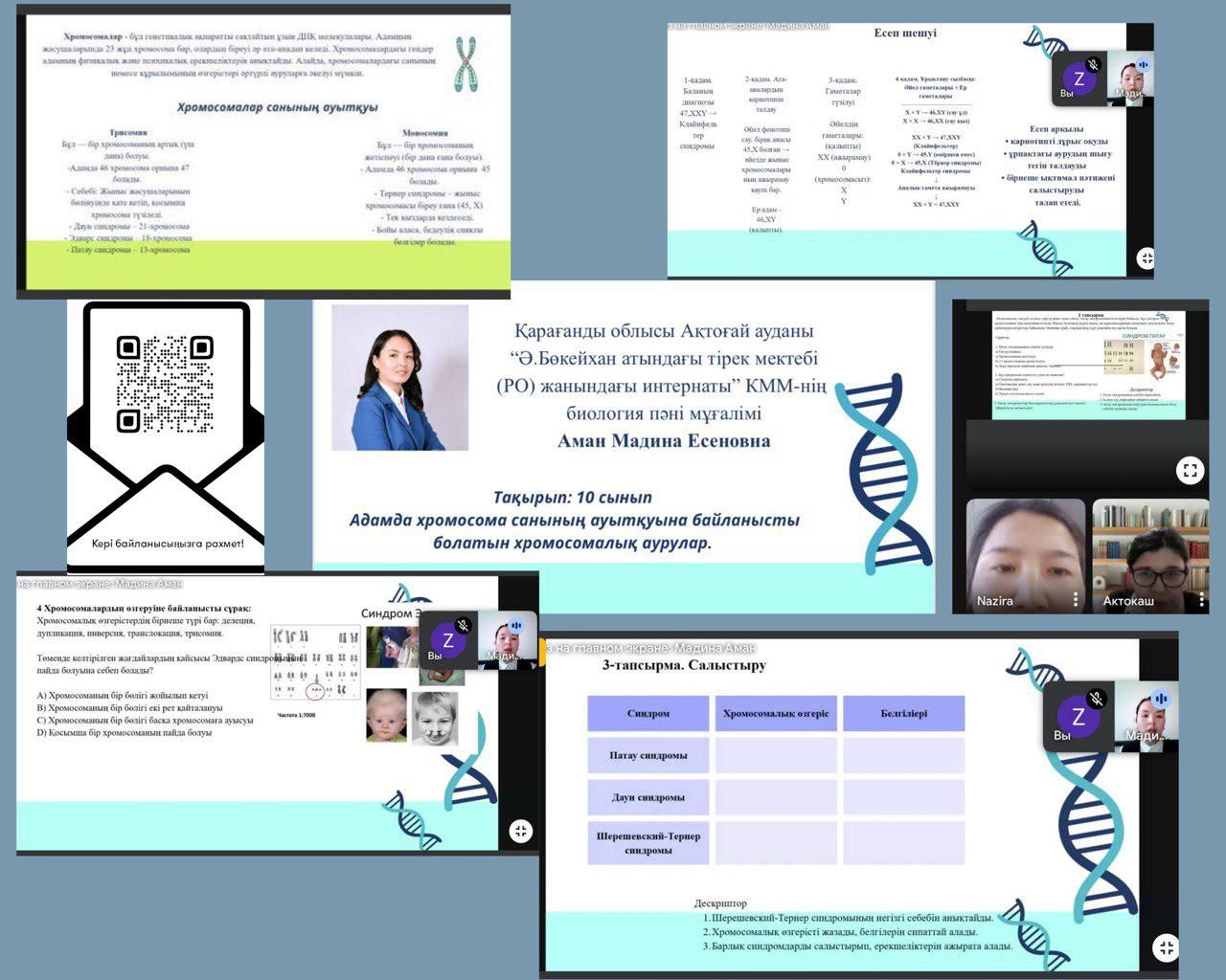 4. Аман Мадина Есеновна, учитель биологии, Актогайский район, КГУ «Опорная школа (РО) имени А. Бокейхана с интернатом», поделилась опытом по теме «Хромосомные заболевания человека, связанные с изменением числа хромосом».