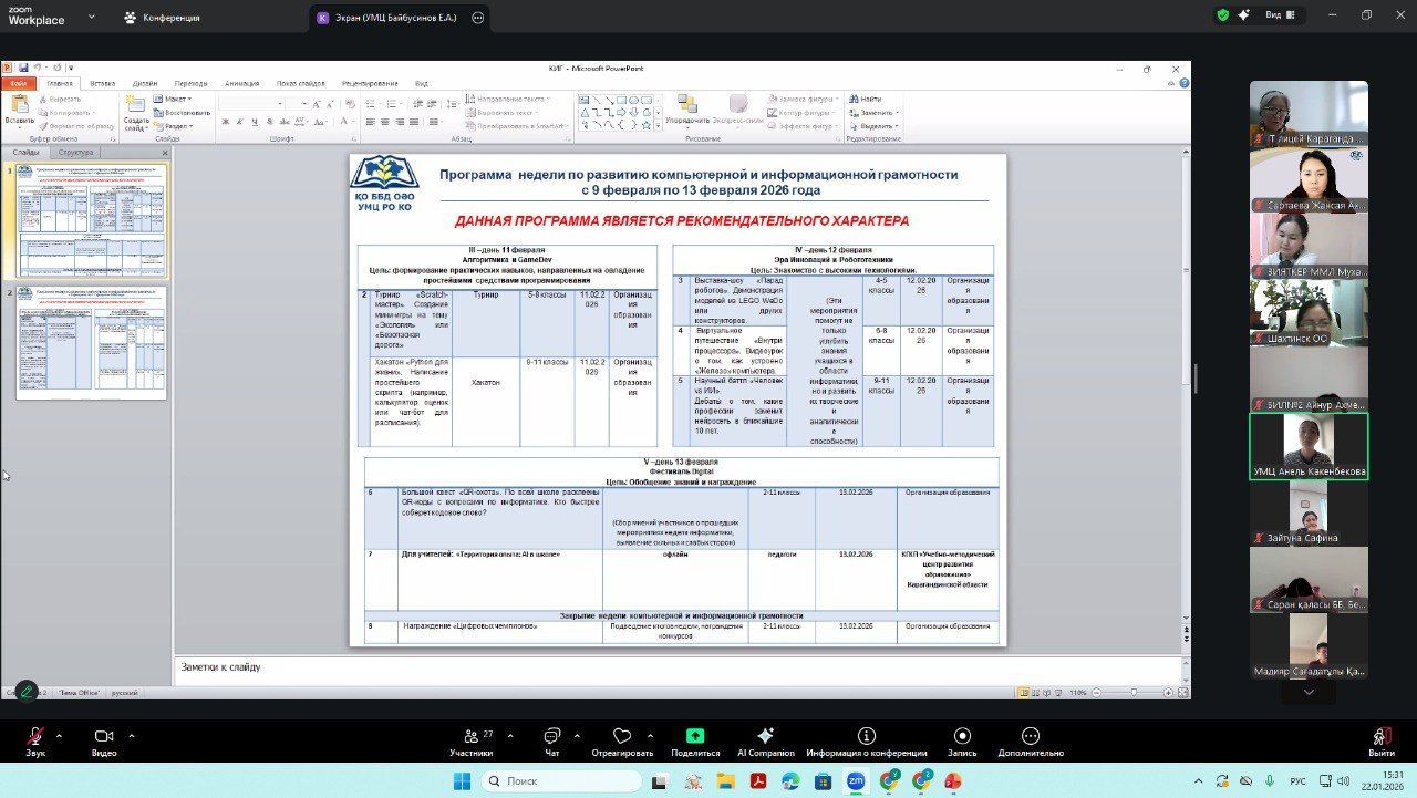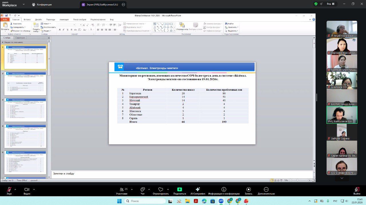 Учебно-методический центр развития образования Карагандинской области 22 января 2026 года на платформе ZOOM провел методический час для методистов отделов образования, заместителей директоров специализированных школ-интернатов, курирующих информатизацию.