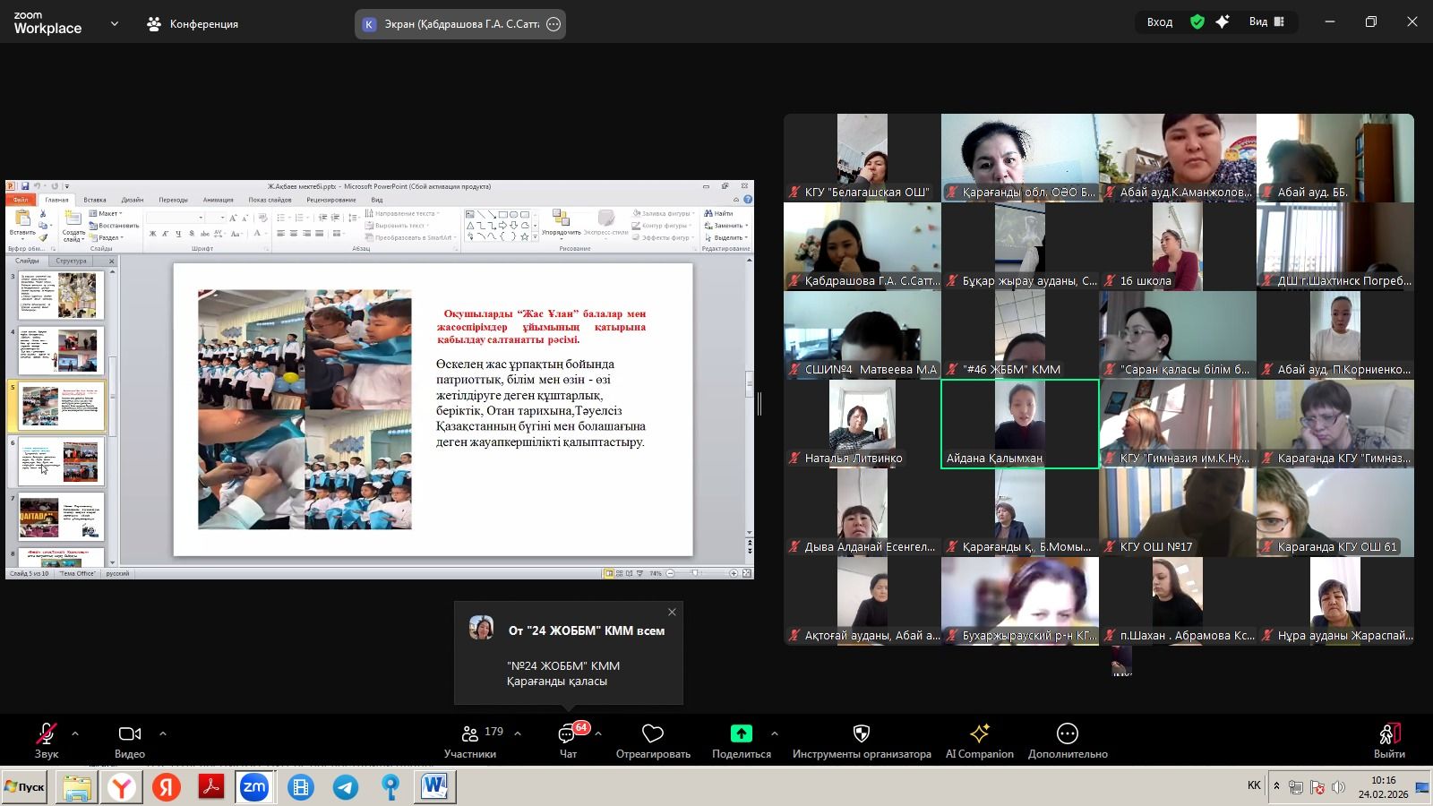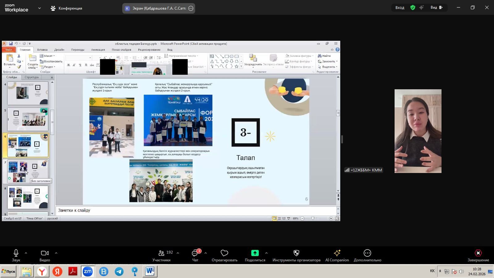 24 февраля 2026 года Учебно-методическим центром развития образования Карагандинской области в рамках единой программы воспитания «Адал азамат» провел областной семинар по обмену опытом на тему «Современный вожатый: лидер, наставник, друг». На семинаре приняли участие 198 школьных вожатых и методистов области.