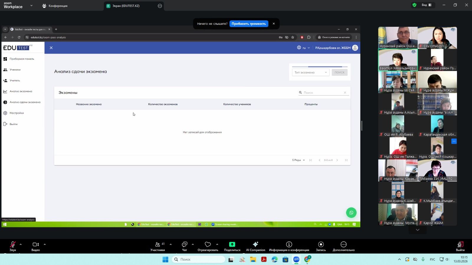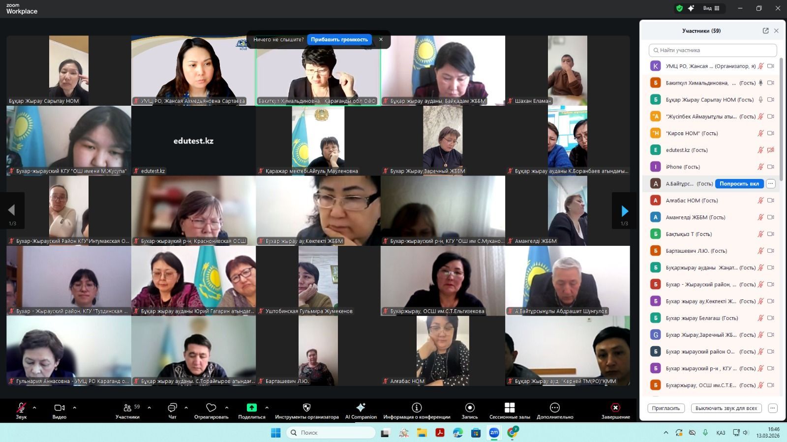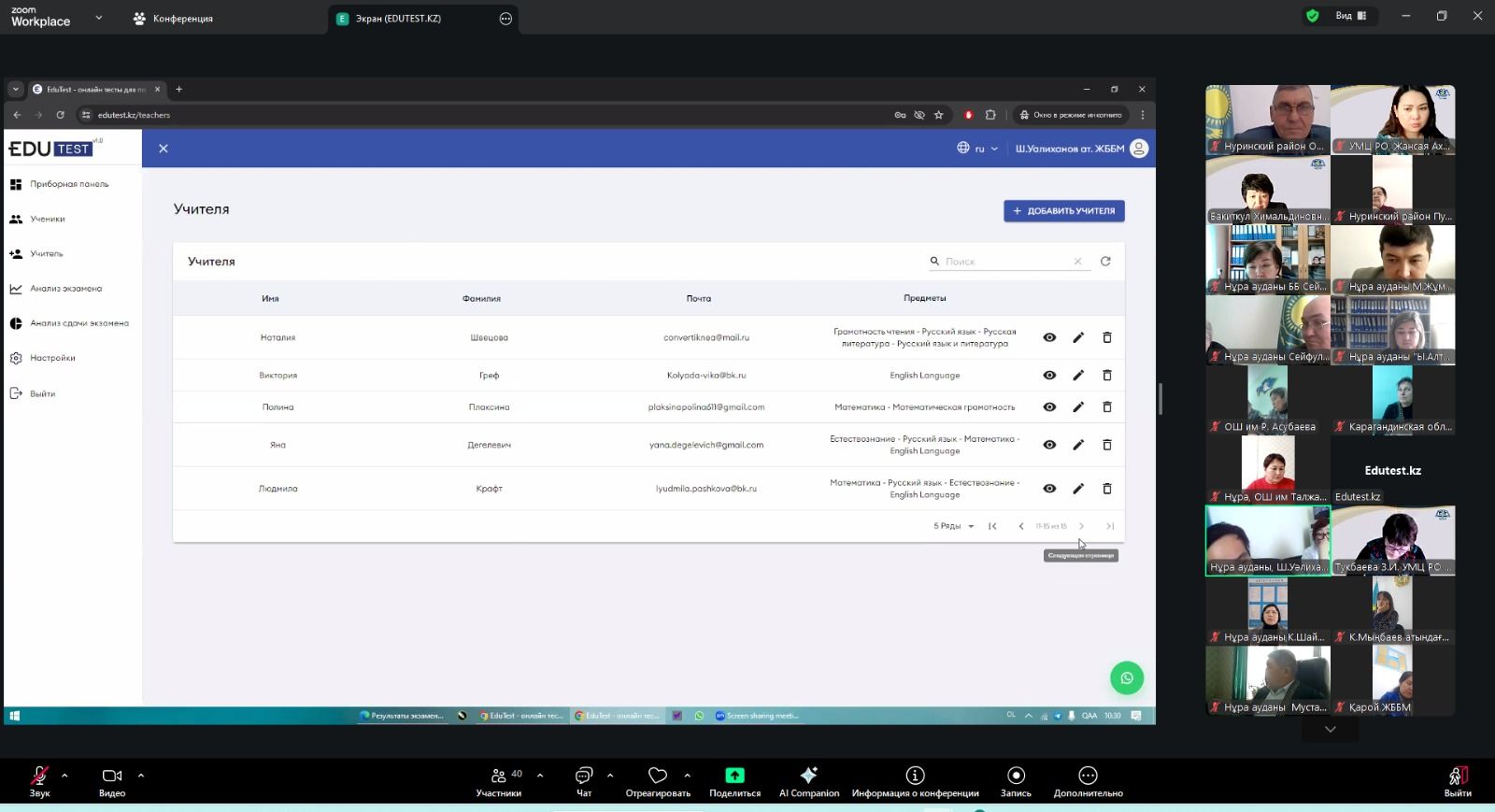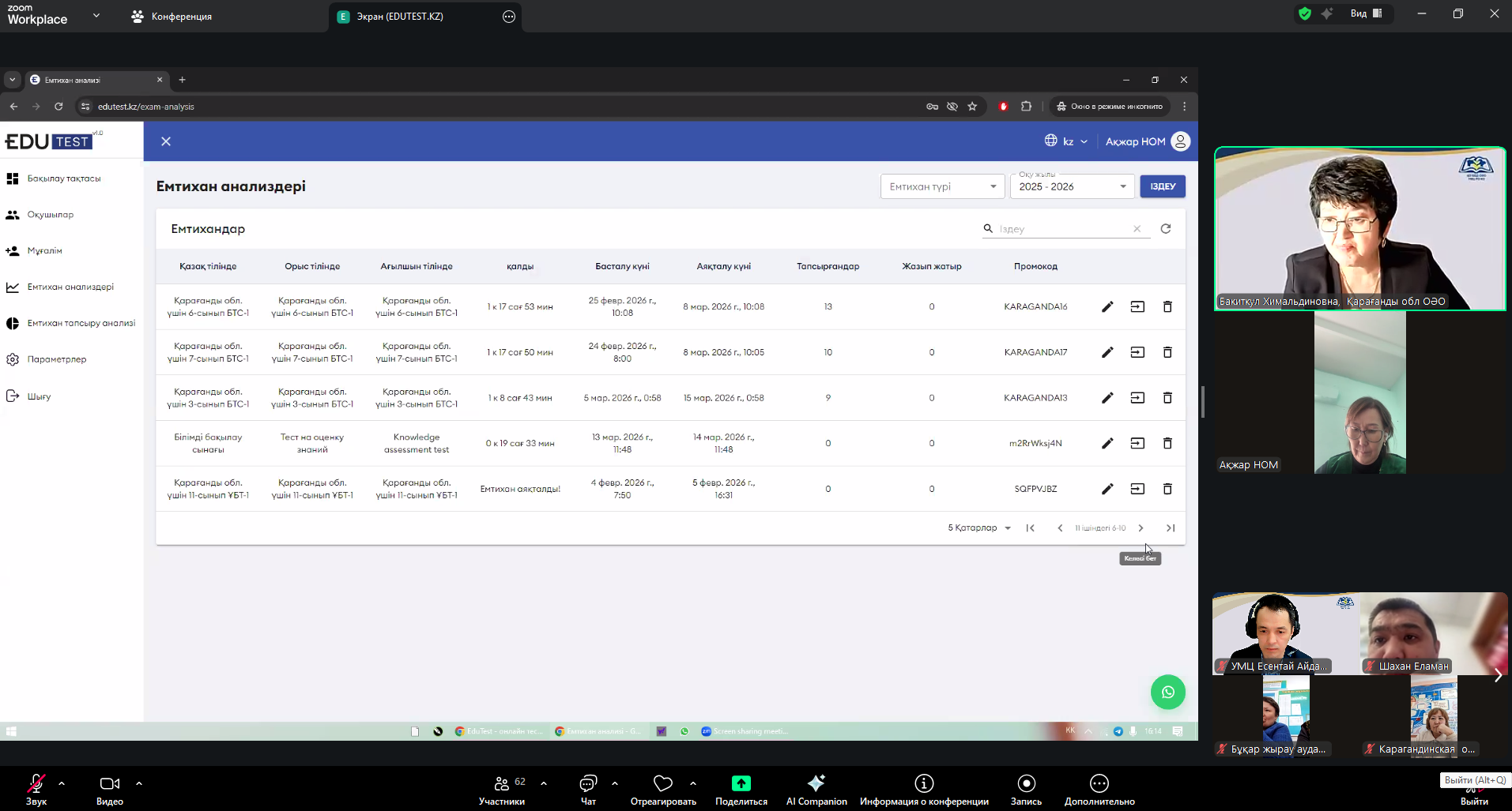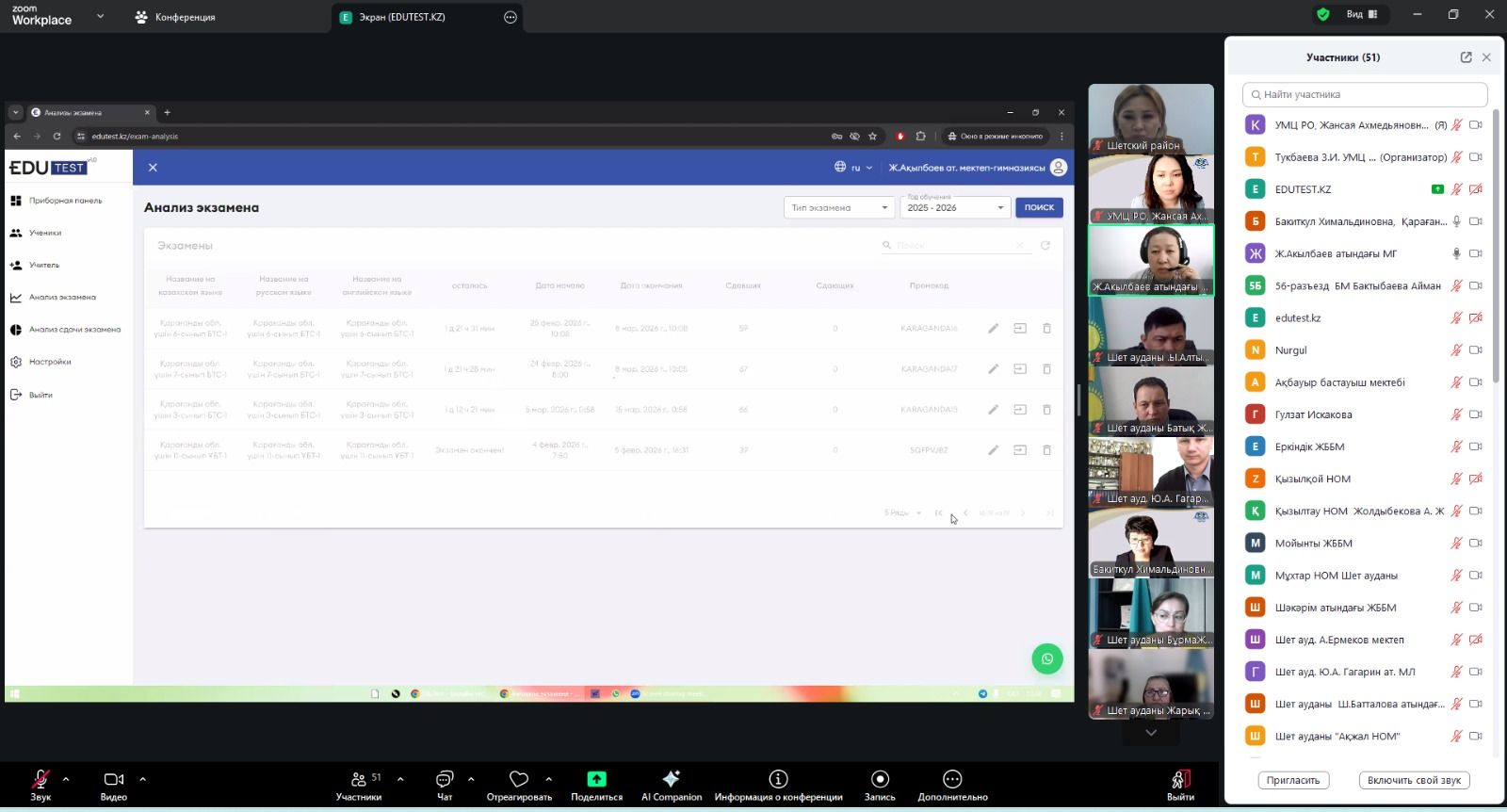 Учебно-методическим центром развития образования Карагандинской области 13 марта 2026 года проведен методический час в рамках областного проекта "Тест проверки знаний (БТС)", и внедрению платформ искусственного интеллекта в образовательный процесс. В онлайн-встрече приняли участие руководители организаций образования пяти районов:
