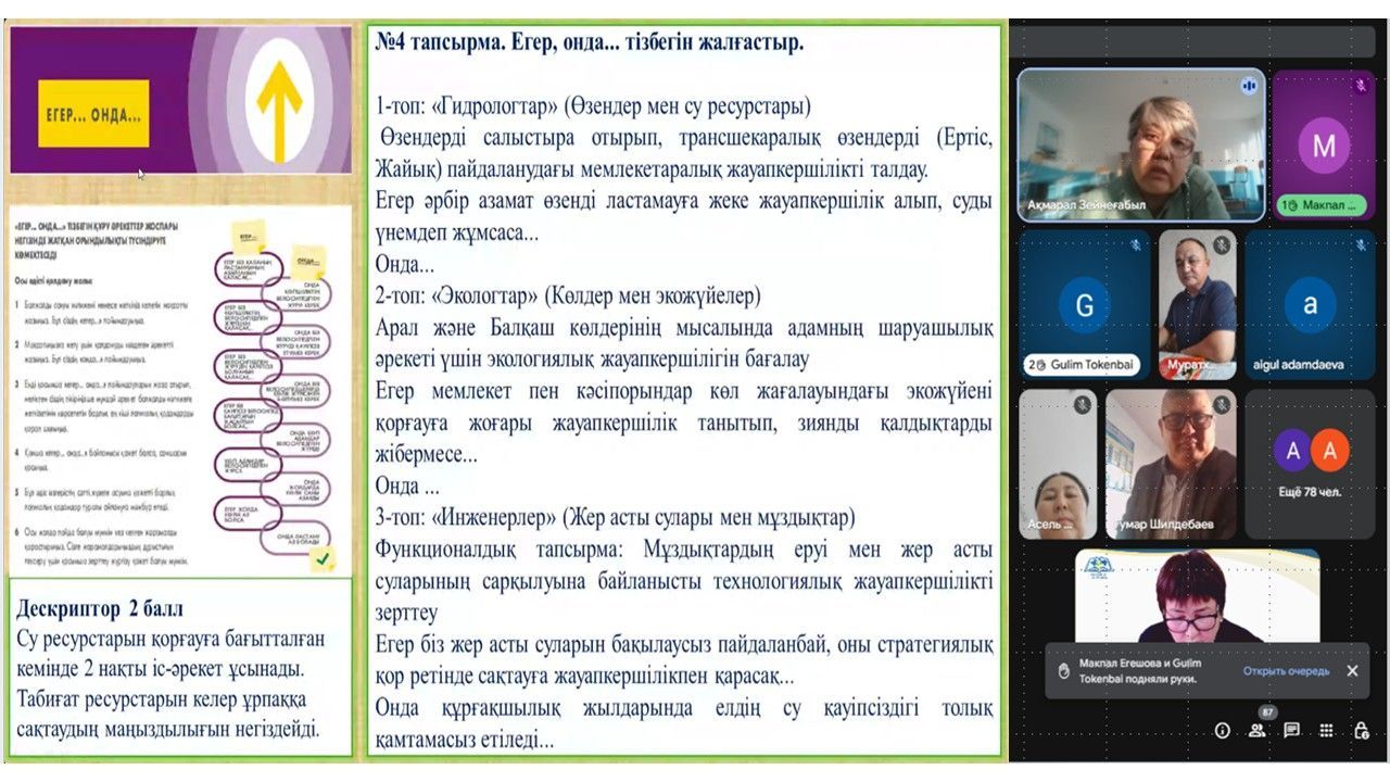 Искакова Л.М.,КГУ «Школа-гимназияимени Аль-Фараби», поделилась опытом работы на тему «Применение искусственного интеллекта на уроках географии».