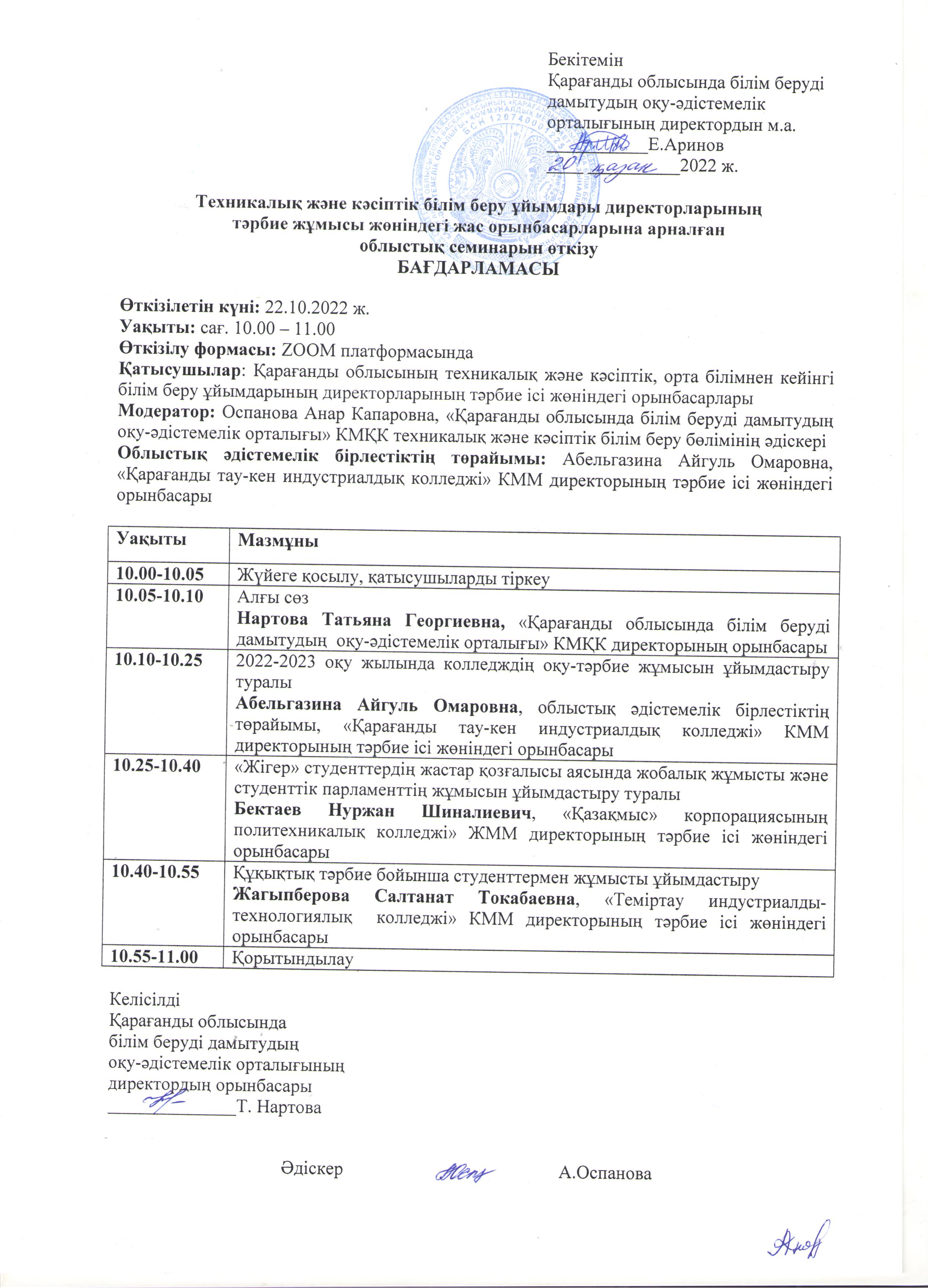• ҚО ББД ОӘО директорының баяндамалары