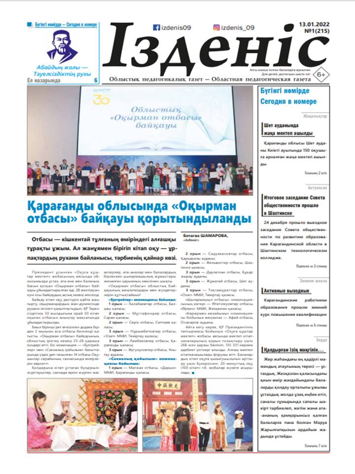 ОБЛАСТНАЯ ПЕДАГОГИЧЕСКАЯ ГАЗЕТА "ІЗДЕНІС" 215
