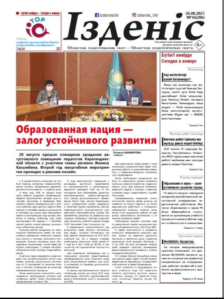 "ІЗДЕНІС" ОБЛЫСТЫҚ ПЕДАГОГИКАЛЫҚ ГАЗЕТІ