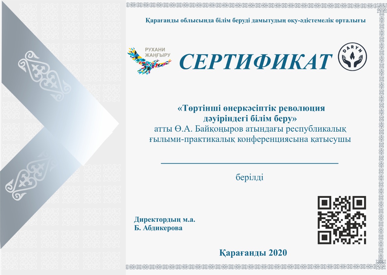 Сертификаты участников республиканской научно-практической конференции им О.А. БайконуроваСертификаты участников республиканской научно-практической конференции им О.А. Байконурова |