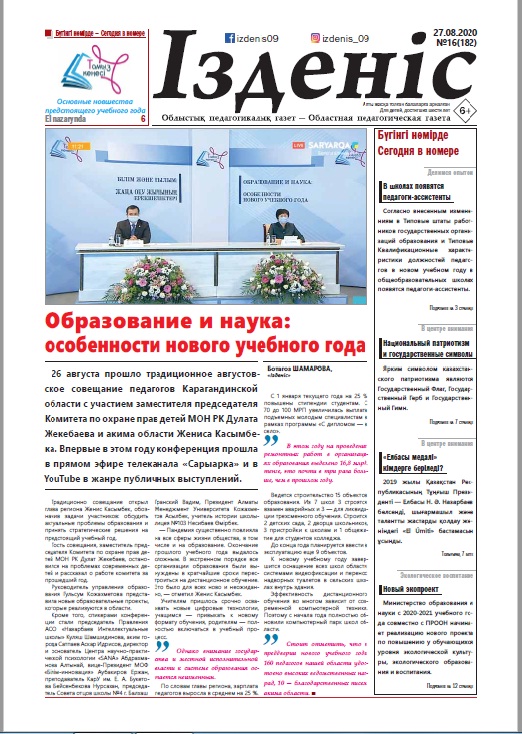6 Объявление Продолжается подписка на областную педагогическую газету «Ізденіс»