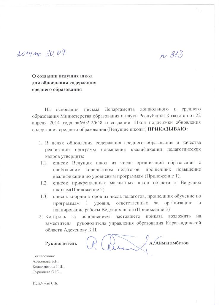Приказ ведущие школы